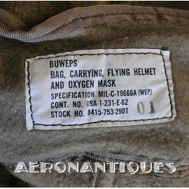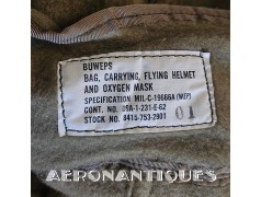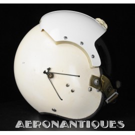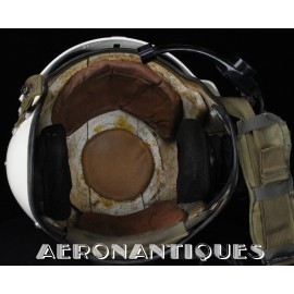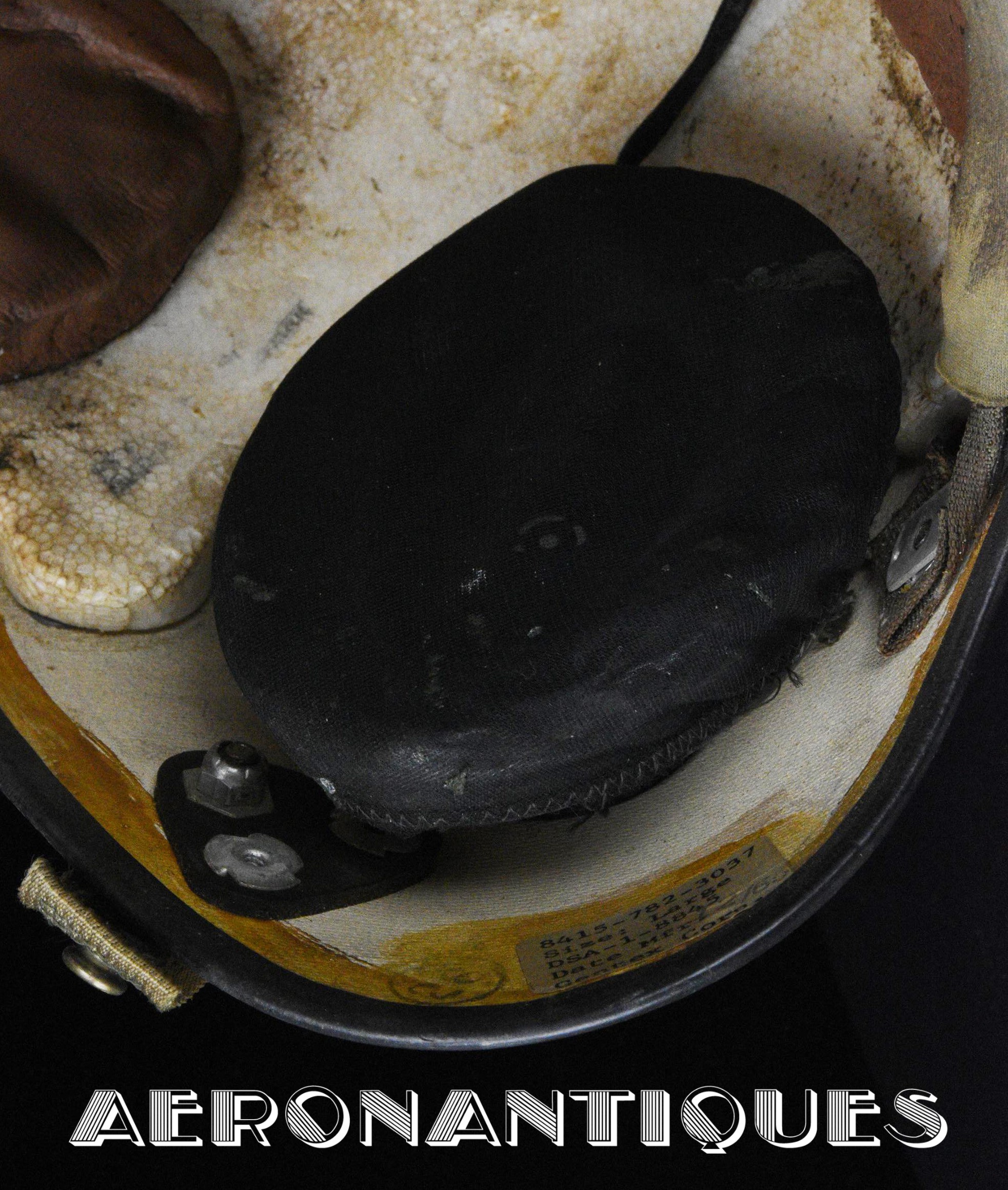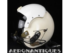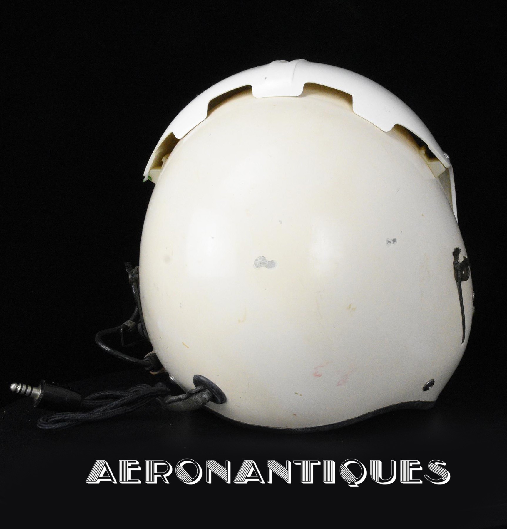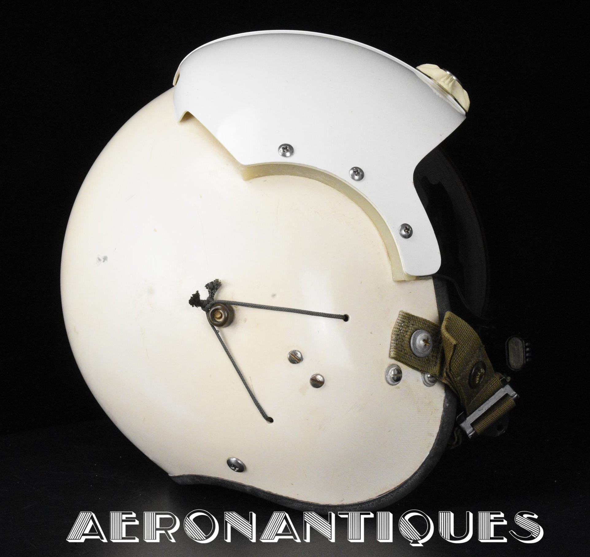 Casque de pilote d'hélicoptère de l'US Army, modèle APH-5A, fabrication GENTEX, daté 12/65. 2nd modèle avec couvre visière en plastique teint dans la masse. Taille "LARGE". Absolument complet avec microphone, écouteurs (avec leurs protections d'origine), cordon et fiche U-93A/U. Tampon amortisseurs recouverts de cuir. Visière rétractable teintée. Excellent état. Caractéristique des équipements des équipages d'hélicoptère pendant les premières années de la guerre du Vietnam. Dans un premier temps les pilotes peindront ces casques en vert OG-107 pour des raisons évidentes de camouflage avant l'arrivée des modèles déjà camouflés à partir de 1966-67. Également inclus le sac de transport d'origine.