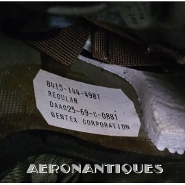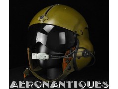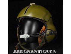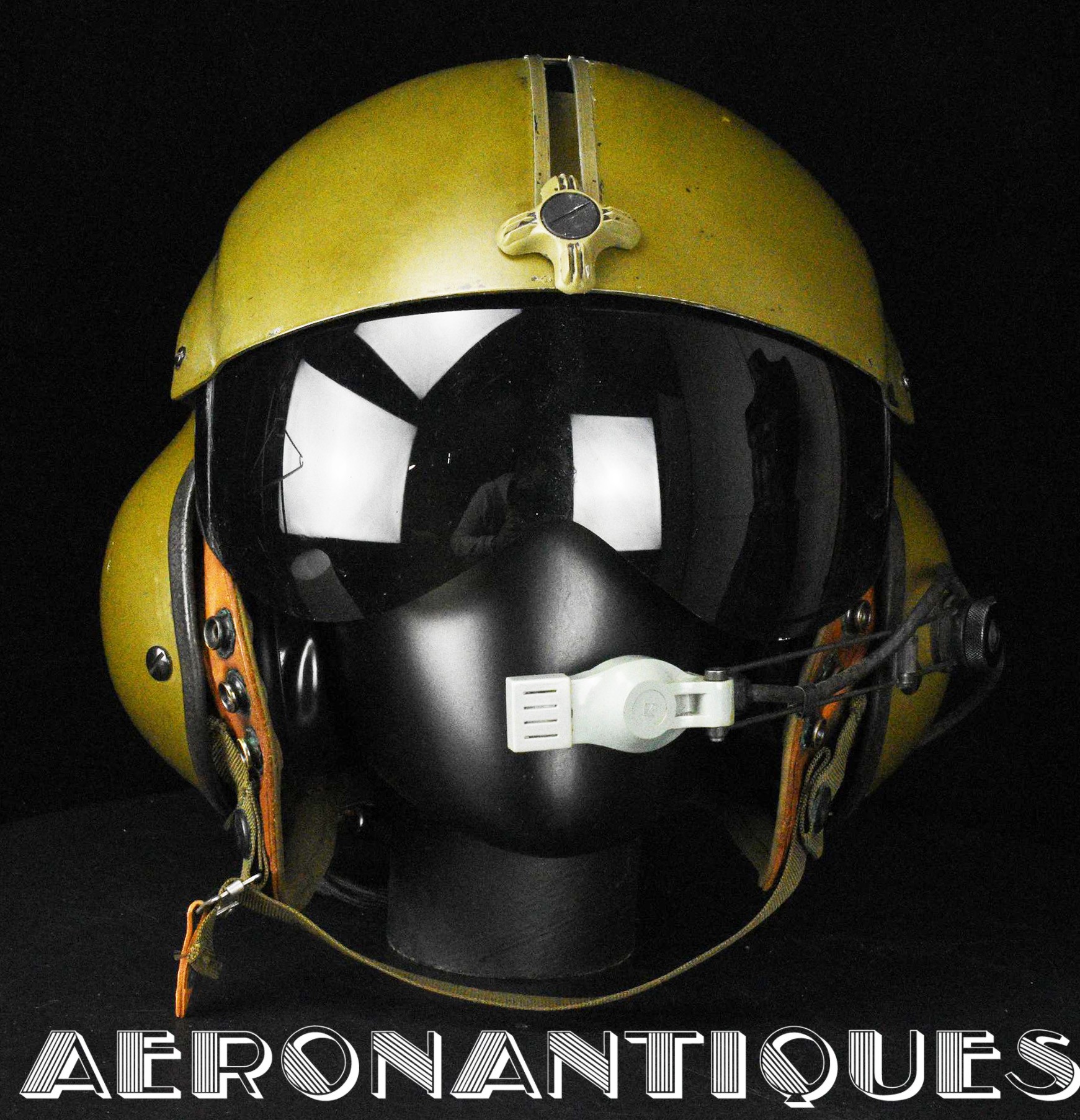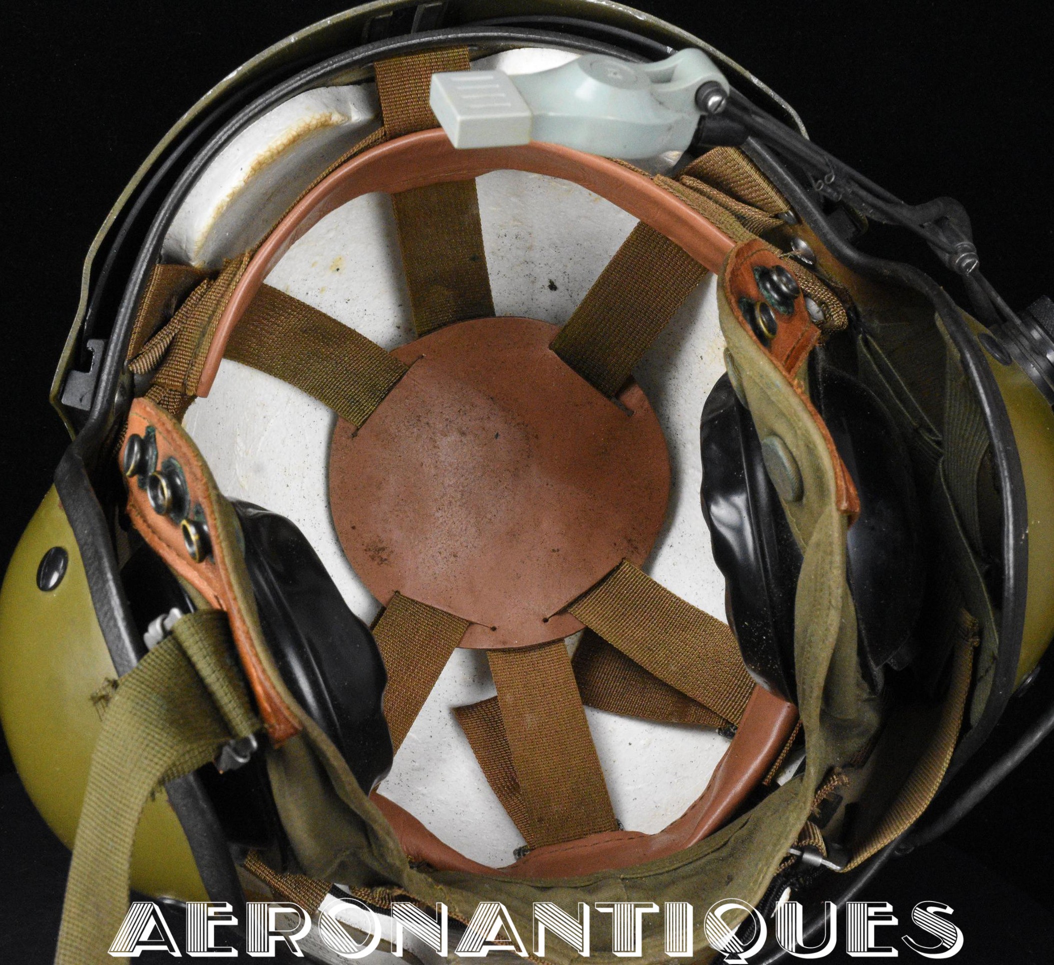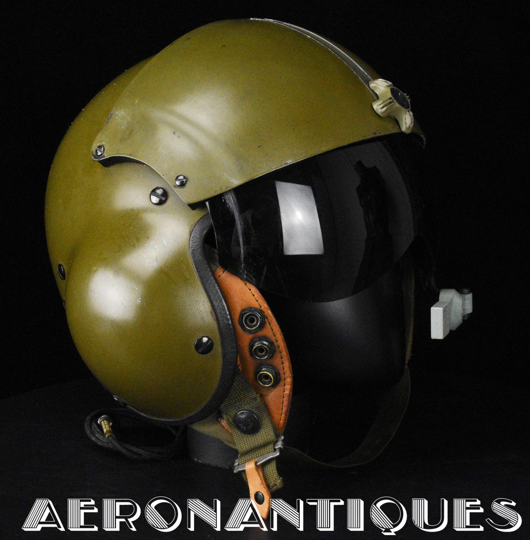 Casque de pilote d'hélicoptère de l'US Army, modèle SPH-4, fabrication GENTEX, daté 1969. Premier modèle (1969-1974). Taille "REGULAR". Complet avec coiffe intérieur nylon et cuir, suspension, microphone, écouteurs, cordon et fiche. Visière rétractable teintée fonctionnelle avec virole de sécurité. Également inclus le sac de transport d'origine, une visière de rechange ainsi que la notice d'utilisation. Conçu pour réduire les nuisances sonores comme l'indiquent les deux premières lettres de sa dénomination (Sound Protection), le modèle SPH-4 ne présentait pas une protection supérieures aux chocs à son prédécesseur de la série APH. Pièce mythique et caractéristique des équipements des équipages d'hélicoptère pendant la guerre du Vietnam. Très bon état.