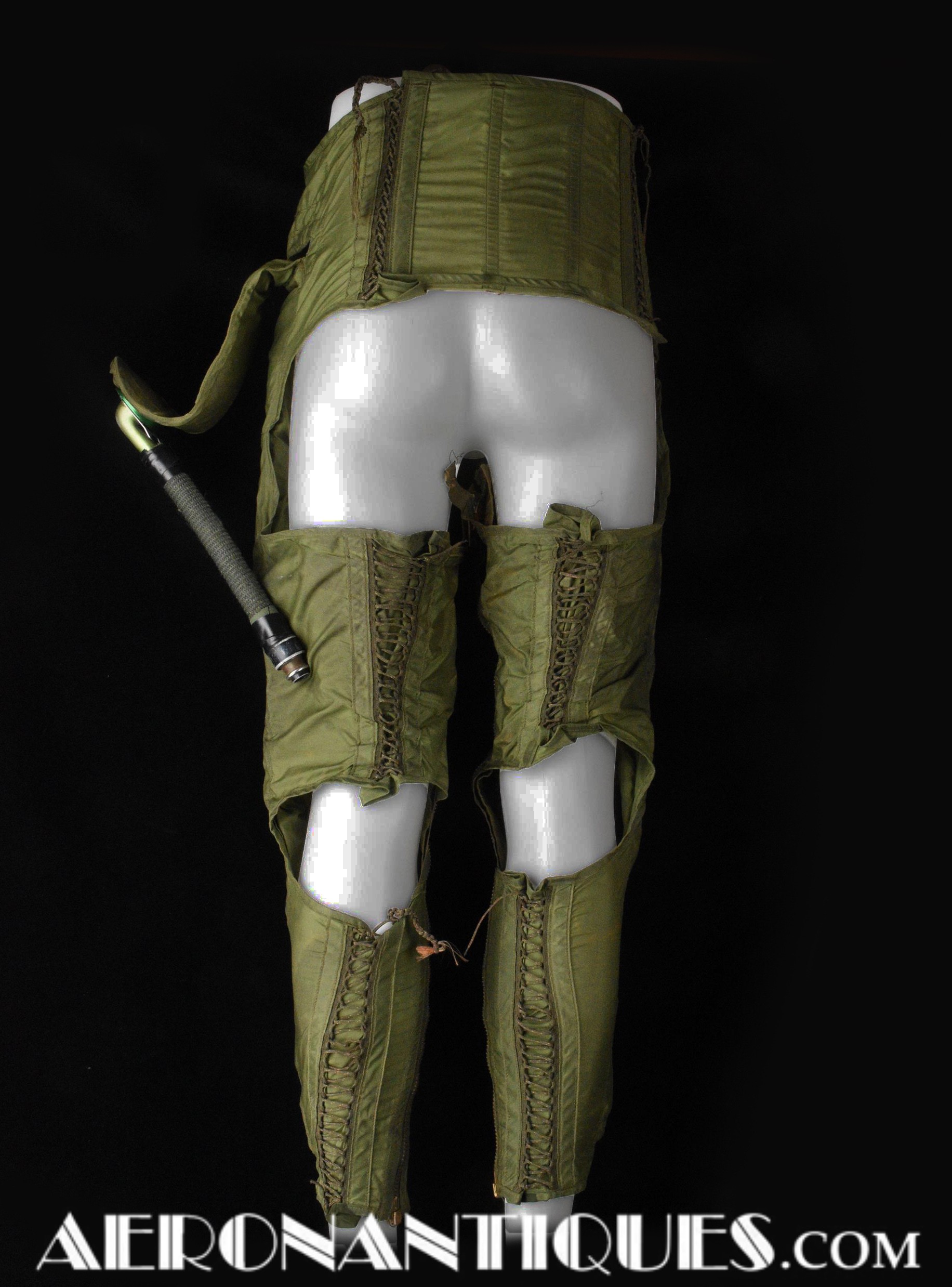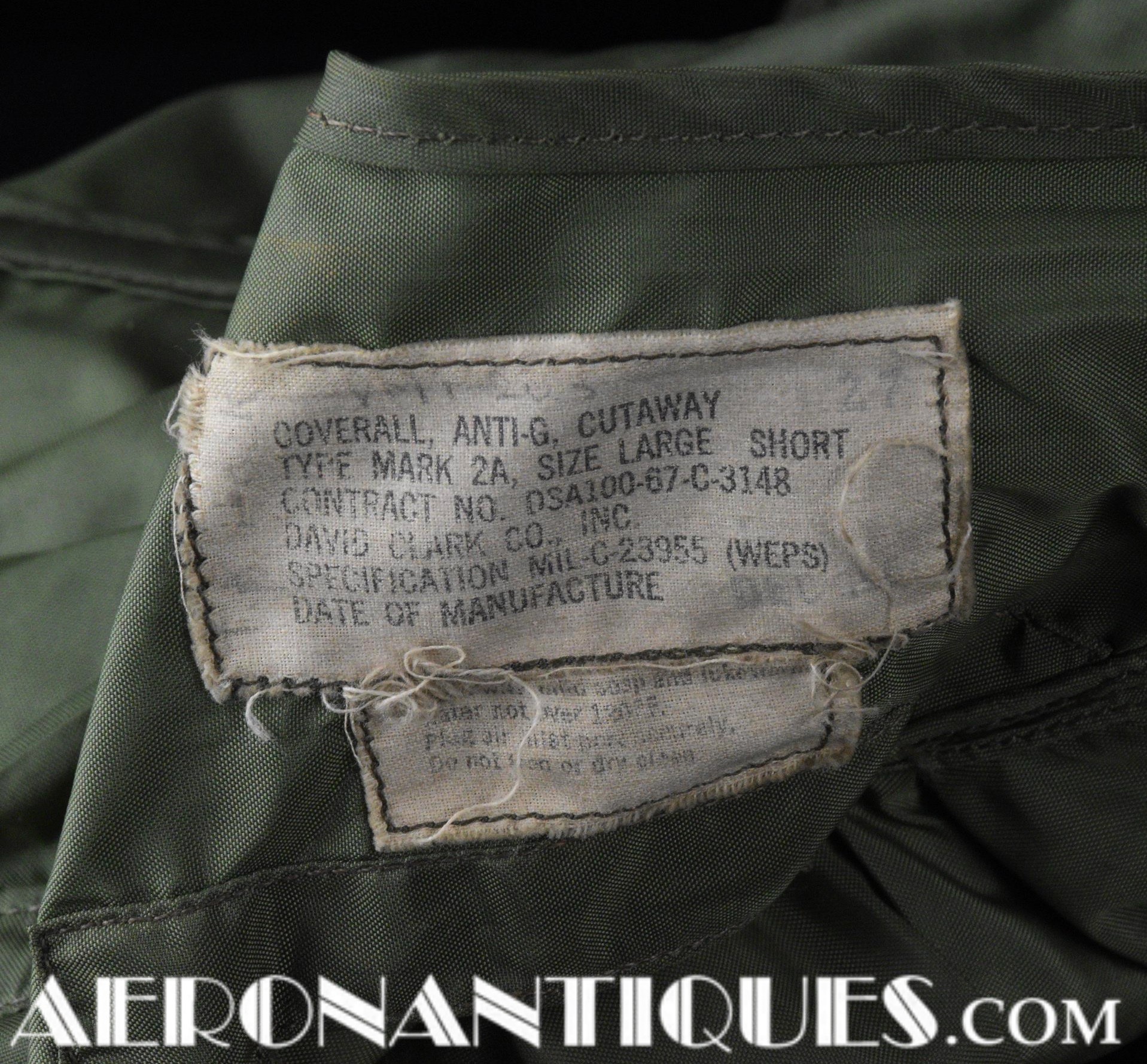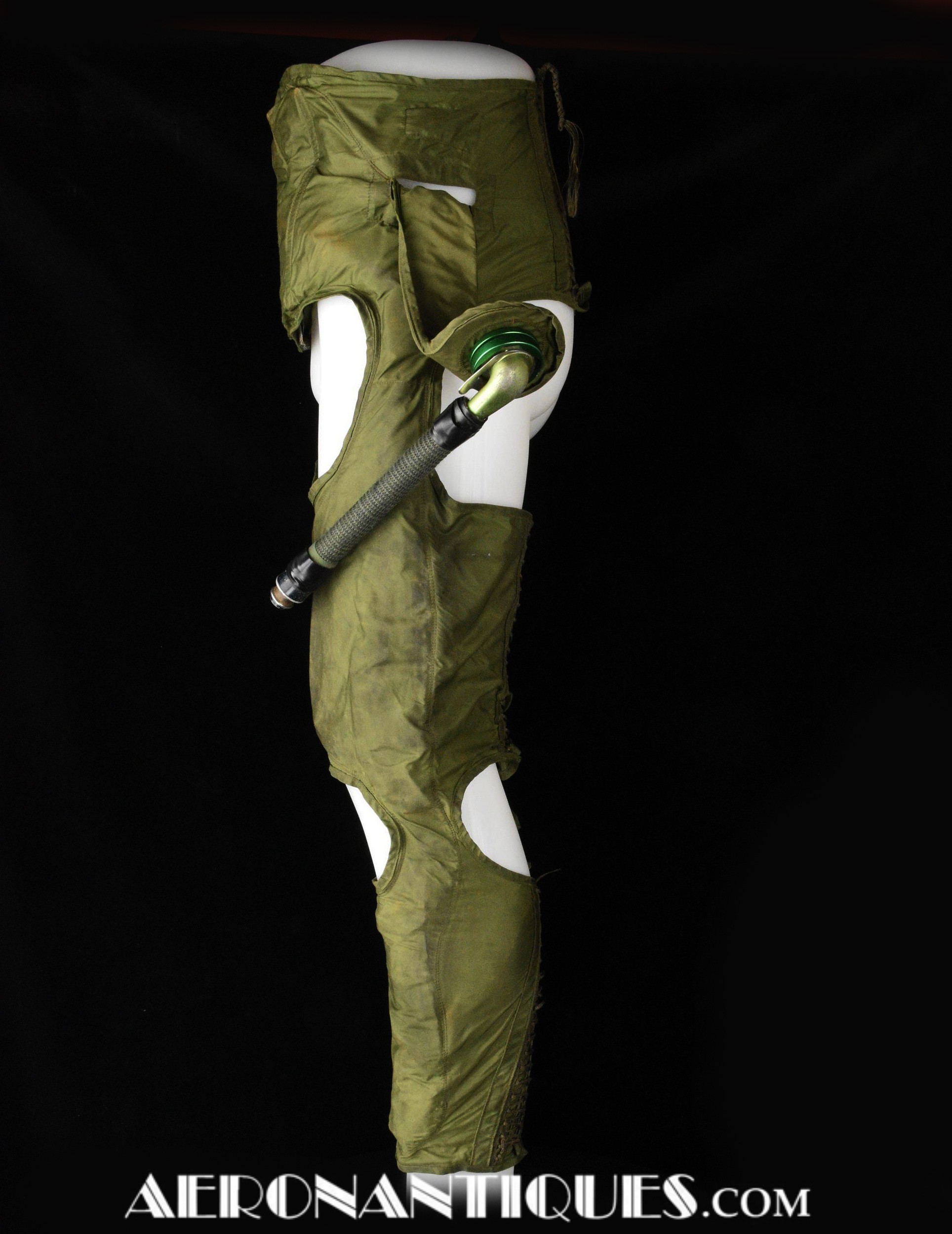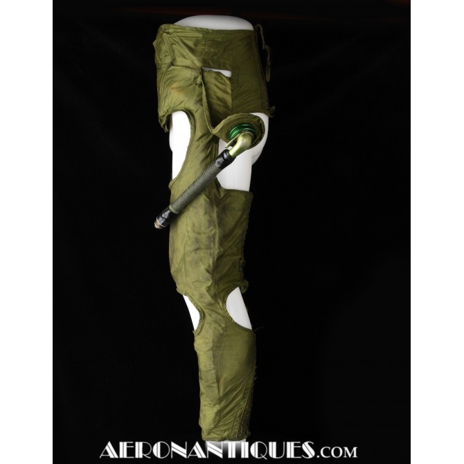 Rare pantalon de vol anti-G modèle MKIIA spécifique US Navy, taille LARGE/SHORT, durite d'arrivée d'air mobile. Fabrication David Clarck datée 1967. Utilisé par les pilotes de l'US Navy jusqu'au début des années 70. Peu courant dans cette taille. Toutes les fermetures à glissière sont fonctionnelles. Pièce difficile à trouver dans ces tailles et état, spécialement avec sa durite et son système de fixation qui sont très souvent manquants.