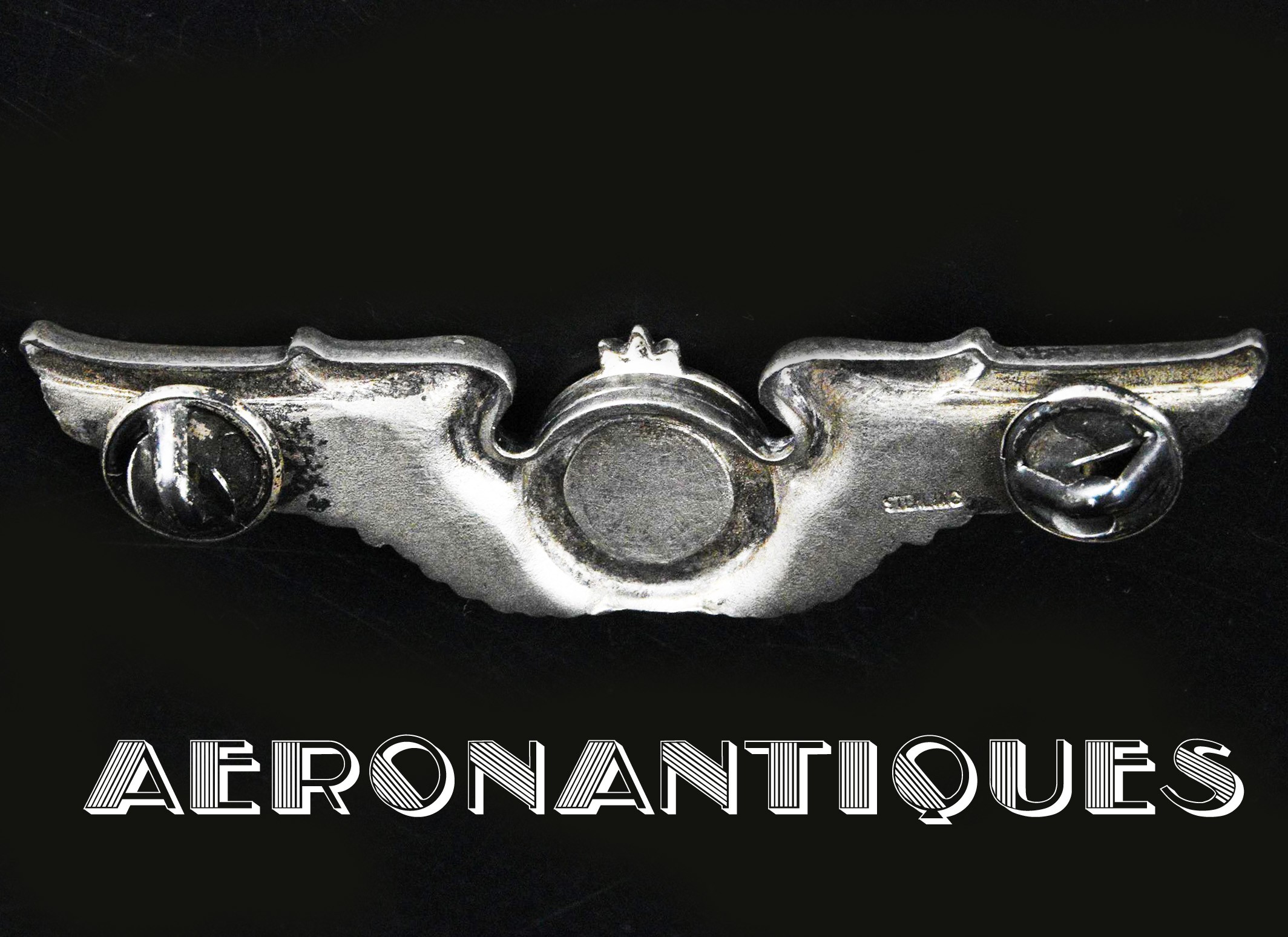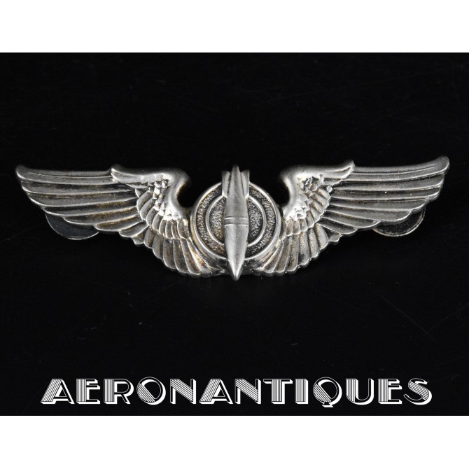 Brevet de qualification de Bombardier de l'US Army Air Force. Embouti avec cible et bombe rapportée. Brevet établi le 4 Septembre 1942. Estampillé "STERLING" (Argent). Attaches papillons en argent BALLOU lisses (1943). Longueur totale: 76 mm. Superbe qualité.