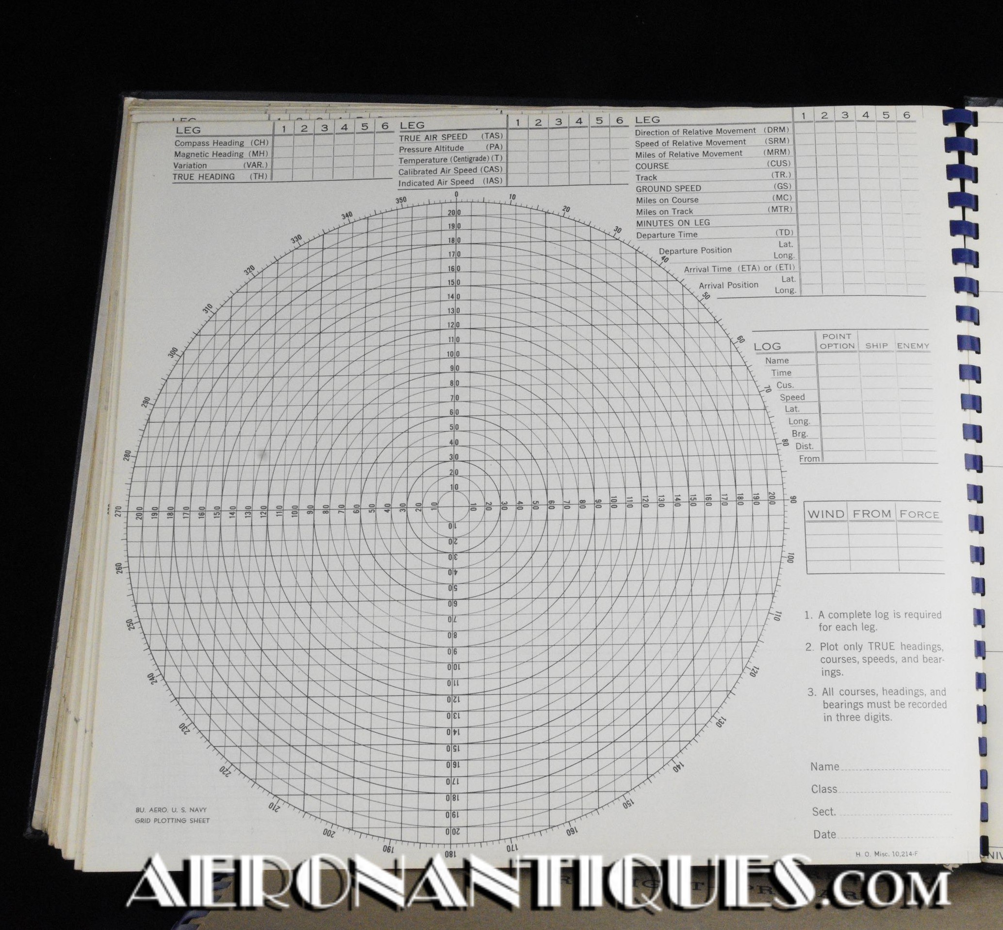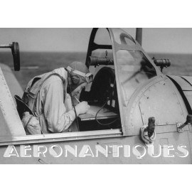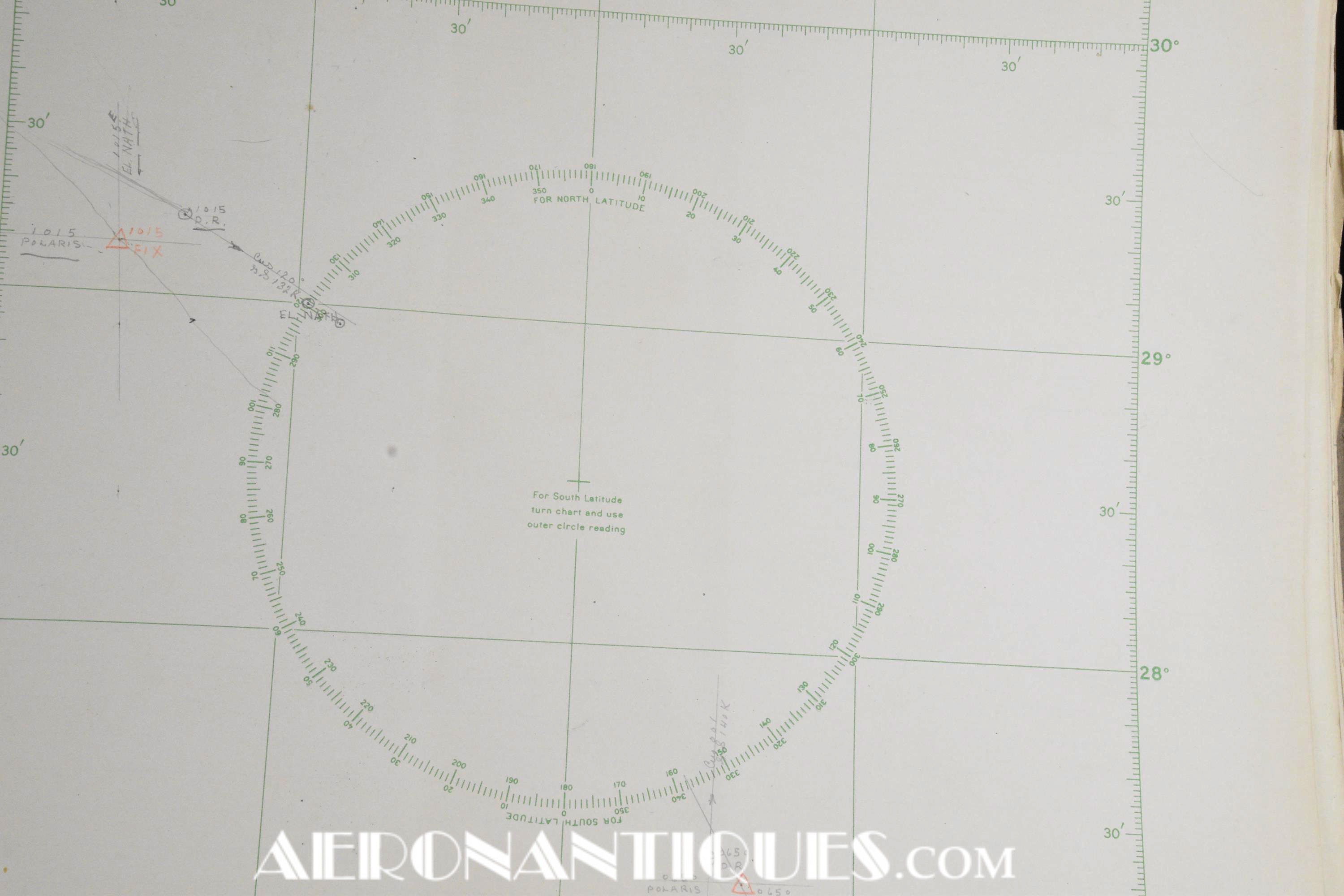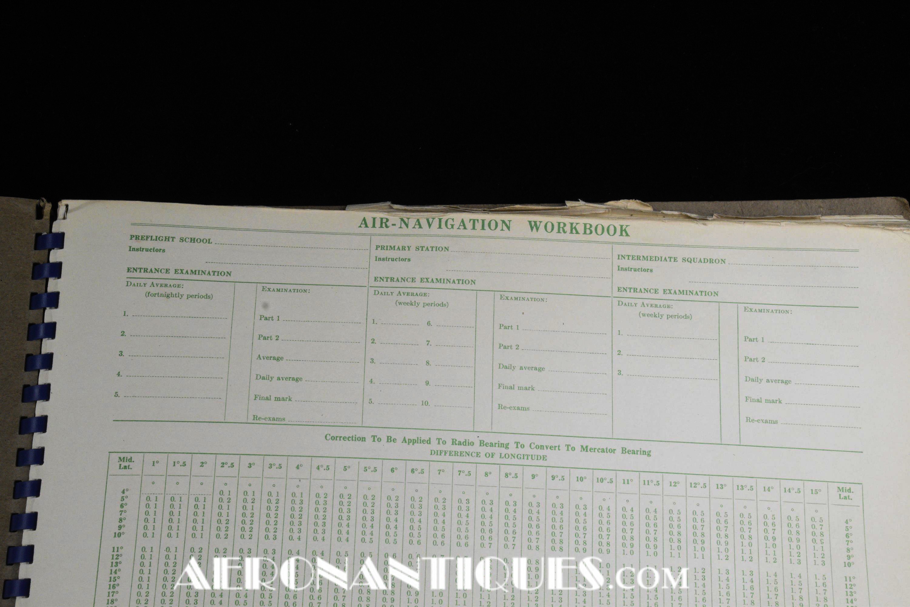 Très rare ensemble d'aides de navigation pour pilotes et navigateurs de l'US Navy. Il s'agit de la fameuse "plotting board" ou planche de calcul et repérage modèle Mark V A, contrat USN WWII. C'est un insert en celluloïd qui se glisse dans un support métallique que l'on peut utiliser comme table de travail dans le cockpit (support métallique non inclus). Il est accompagnée de ses deux cahiers, un de théorie et l'autre d'exercice pratique, datés 1942 et 1943. Utilisé dans les Grumman F6F Hellcats, TBF Avengers, etc..