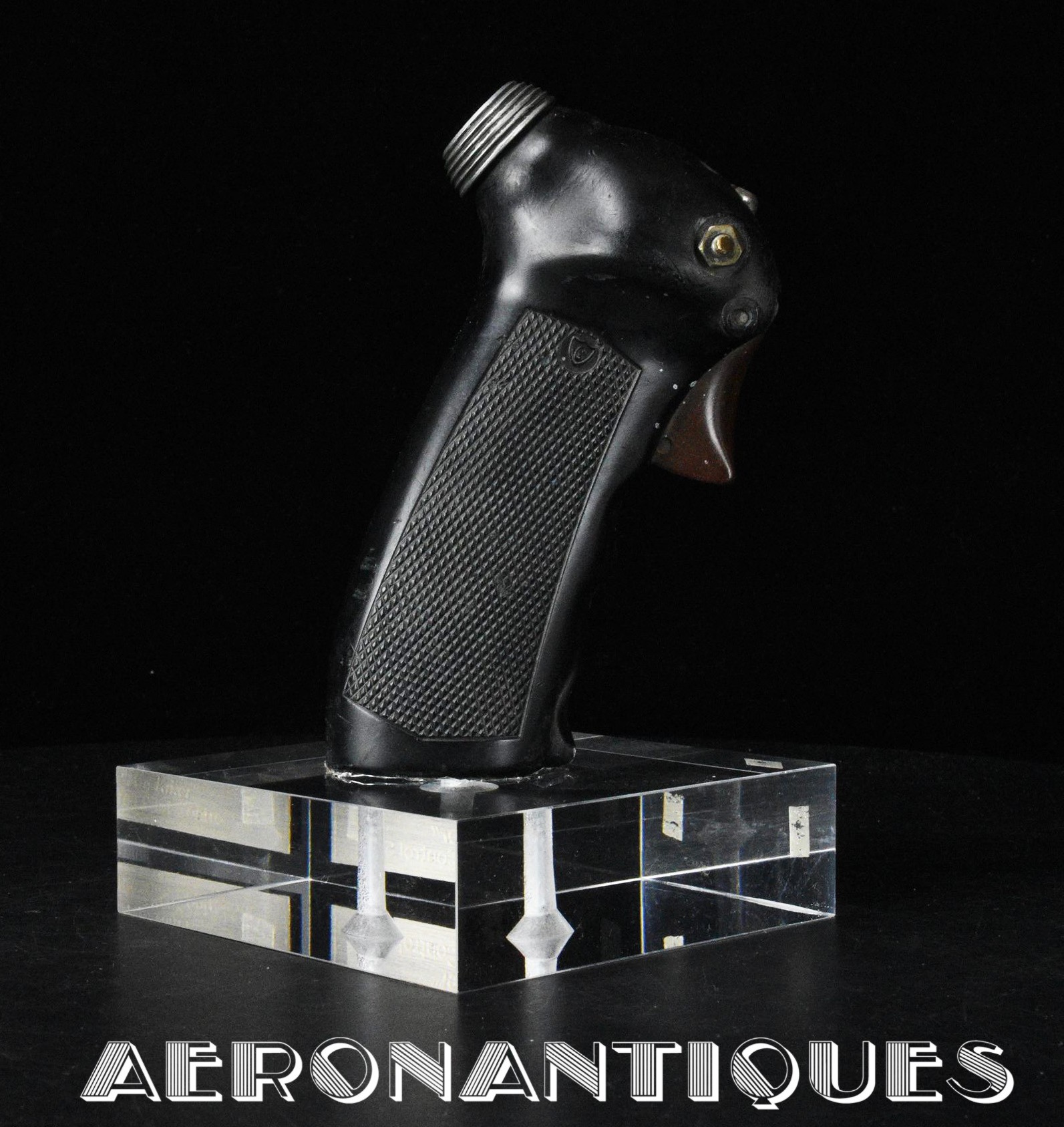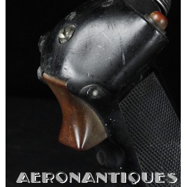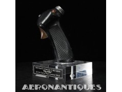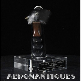 Poignée de contrôle type B-7A, équipement standard sur North American F-86 SABRE versions A (1949-52), complète avec tous ses boutons et mollette de contrôle. Présentée sur socle en altuglas, hauteur 170 mm. Fabrication GUARDIAN. La poignée de contrôle B-7A sera remplacée sur par le modèle B-8 à partir de 1953. Très belle pièce de décoration, évocatrice de l'un des appareils les plus mythiques de l'US Air Force.