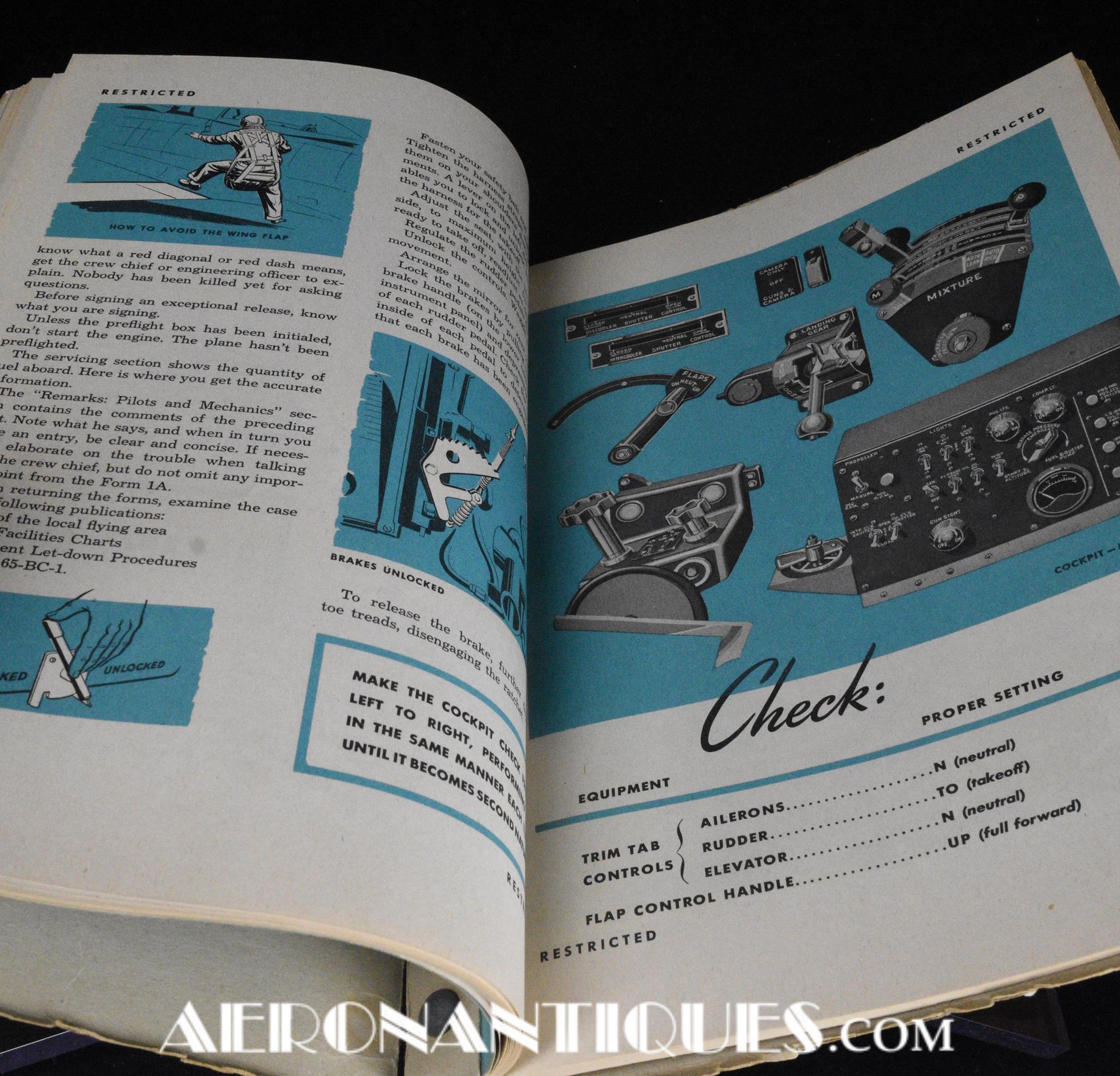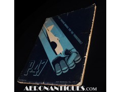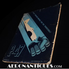 Edition originale de Mars 1945 du manuel de pilotage du P-47 Thunderbolt de l'US Army Air Force, dimensions 27,5 cm X 20,5 cm. Le manuel comprend 96 pages présentant l'appareil et ses techniques de pilotage avec de nombreuses illustrations en couleur. Très beau manuel de référence et une source d'informations incontournable sur ce chasseur mythique de l'US Army Air Force.