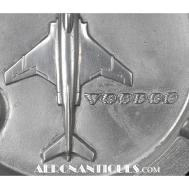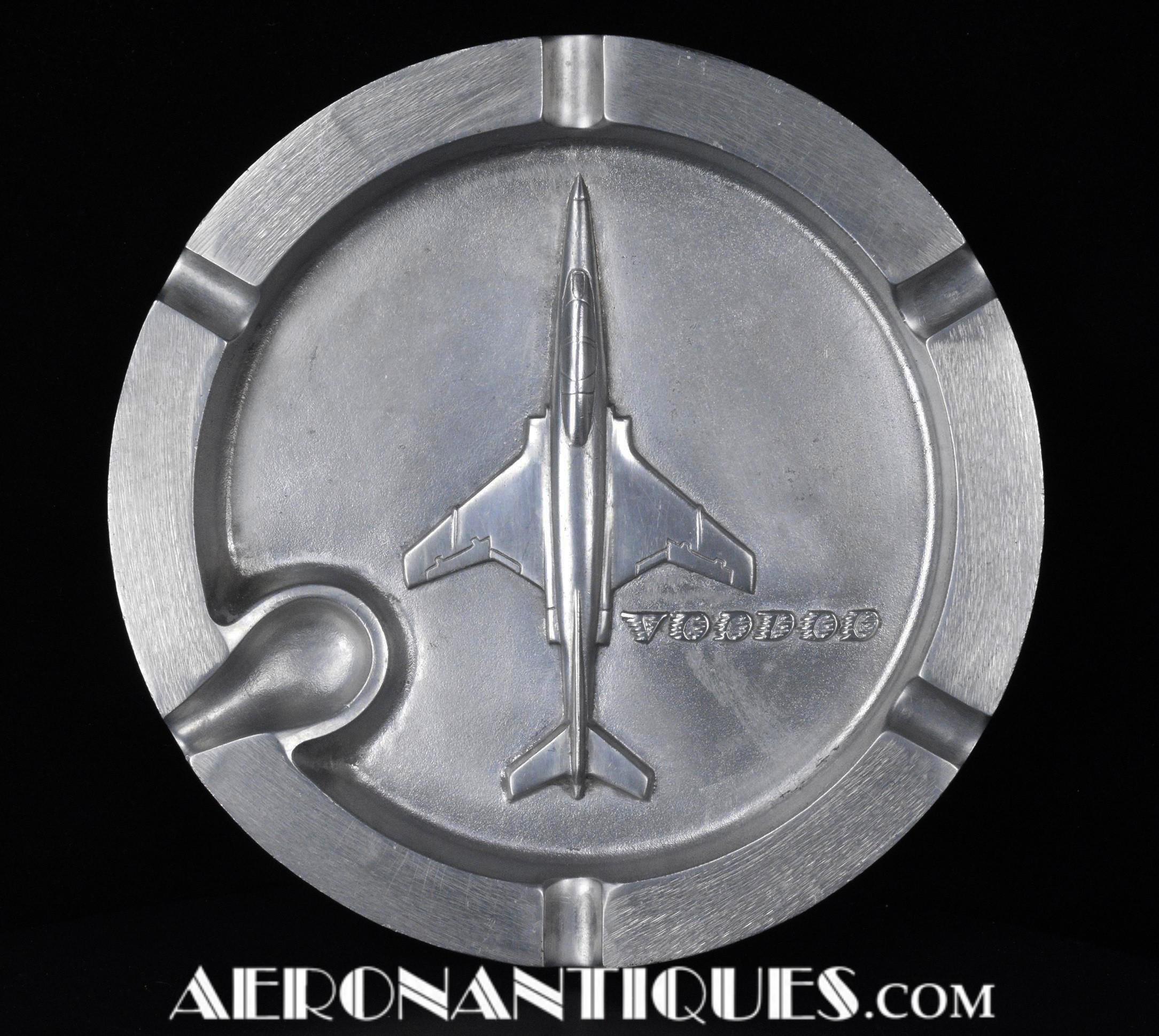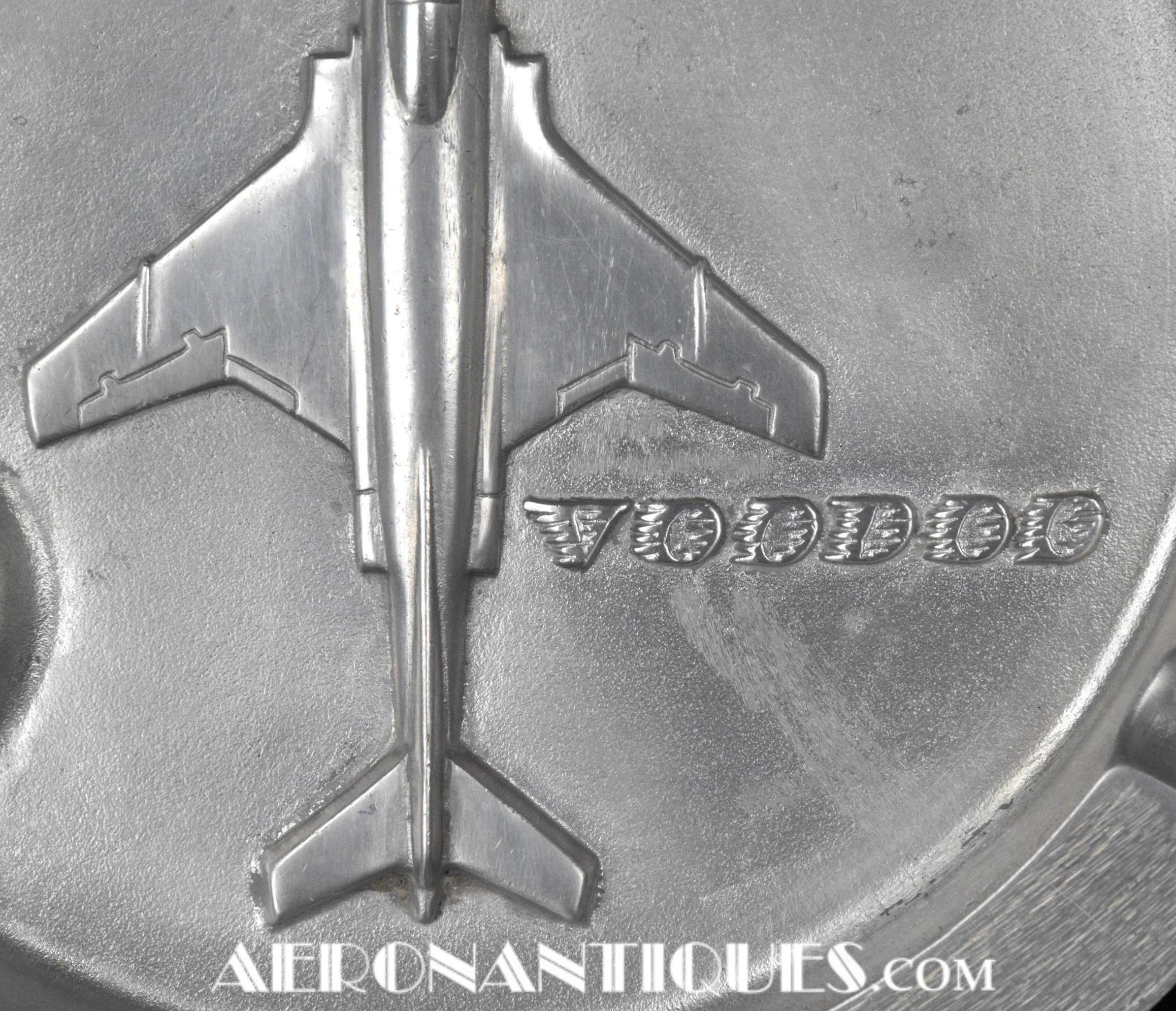 Très beau cendrier en fonte d'aluminium du McDonnell F-101 VOODOO. Fabrication publicitaire de la firme éditée lors du lancement de l'appareil.  Emplacements pour poser une pipe et 5 cigarettes. Diamètre 23 cm. Incontournable pour tous les amateurs de cet appareil mythique de l'US Air Force qui s'est illustré durant la Guerre du Vietnam.