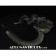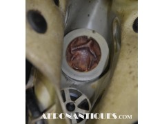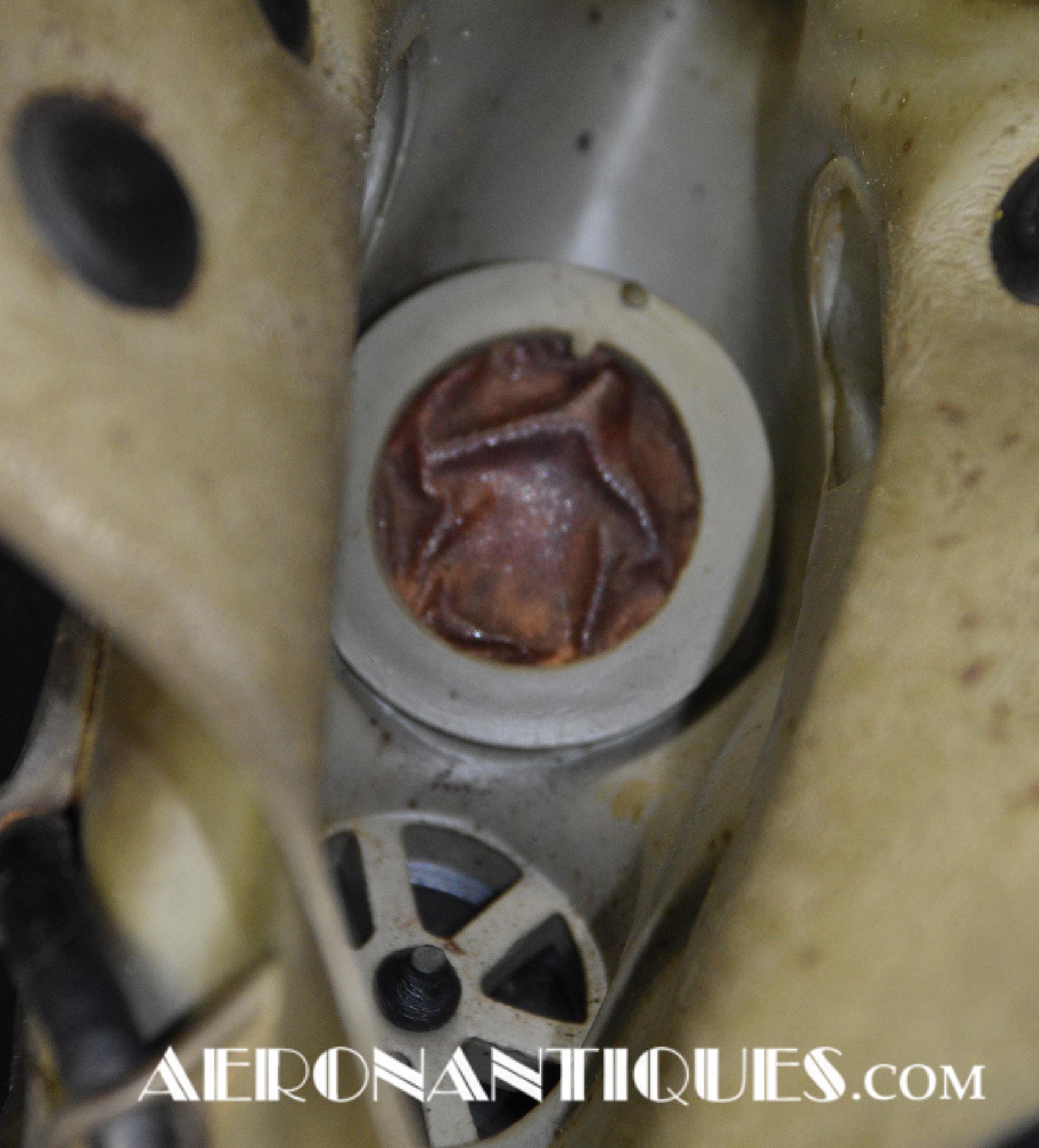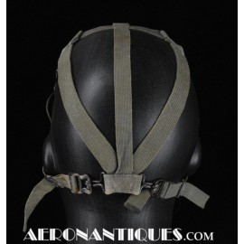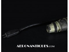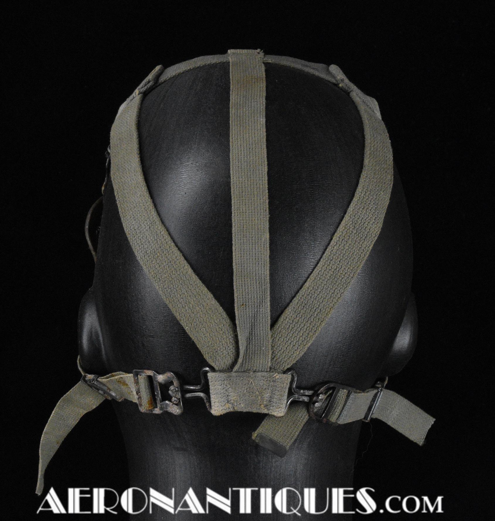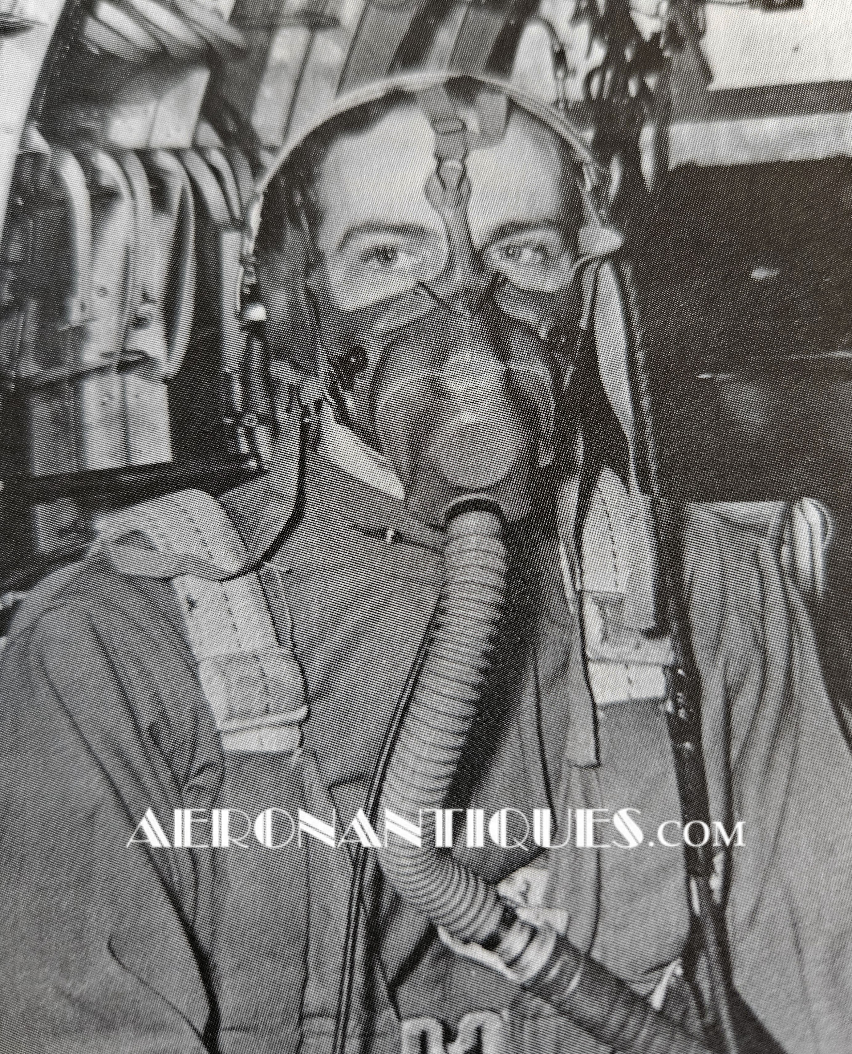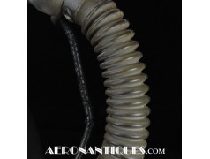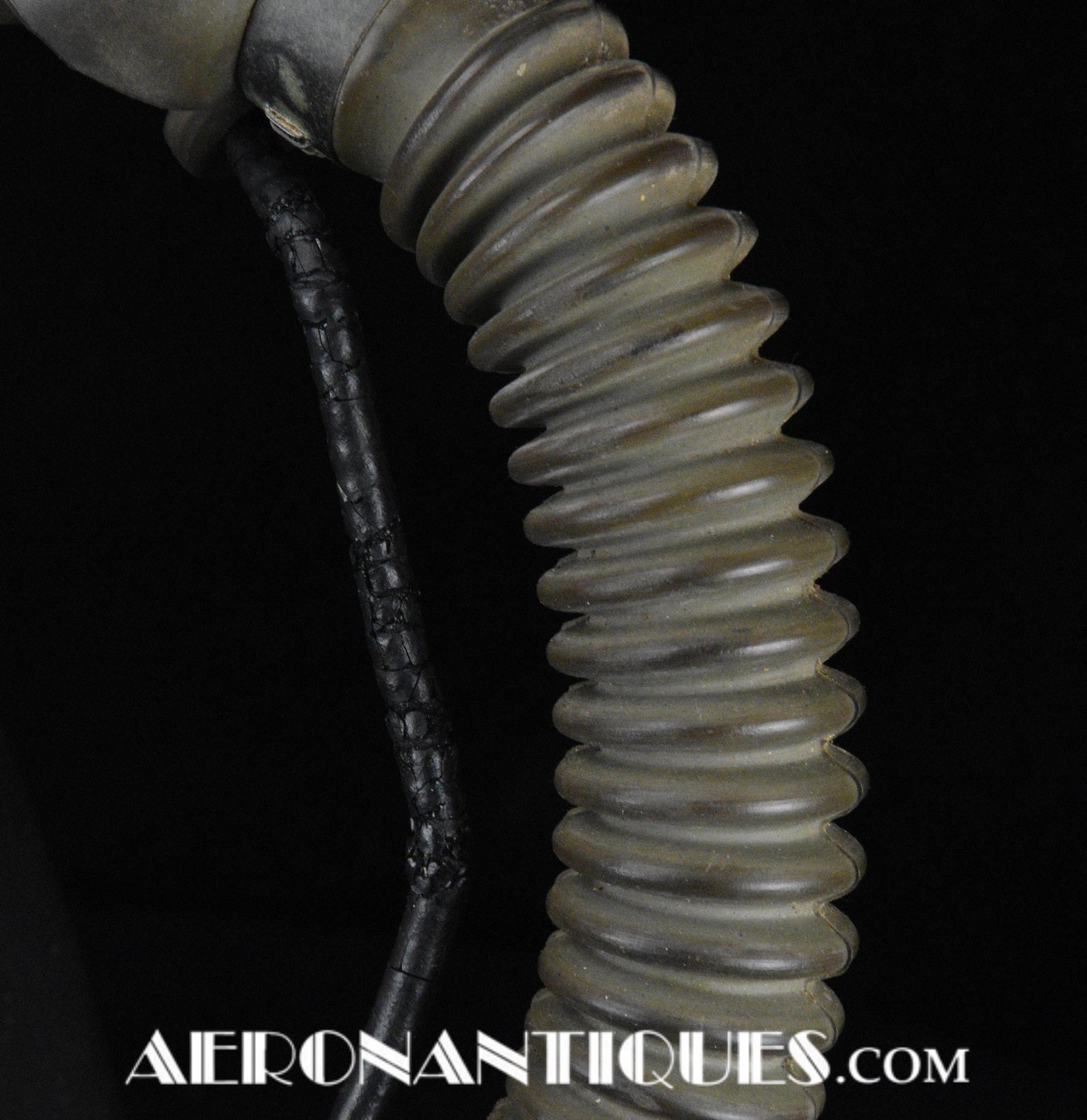 Très rare masque à oxygène type A-10. Premier modèle avec fixation frontale. Taille STANDARD. Daté AVRIL 1942. Estampillé US ARMY AIR FORCE, Fabrication ACUSHNET. Complet avec pince-nez original, microphone et harnais "juliet" permettant de porter le masque sans serre-tête . Malgré une déchirure sur le côté gauche, le caoutchouc est resté souple et la durite est intacte. Le cordon du microphone a durci avec le temps et s'est fissuré à quelques endroits. Jugé très inconfortable, il sera modifié à partir de l'été 1943. Masque excessivement rare à trouver dans sa configuration d'origine, la plupart des exemplaires ayant été réglementairement modifiés avec la patte frontale coupée.