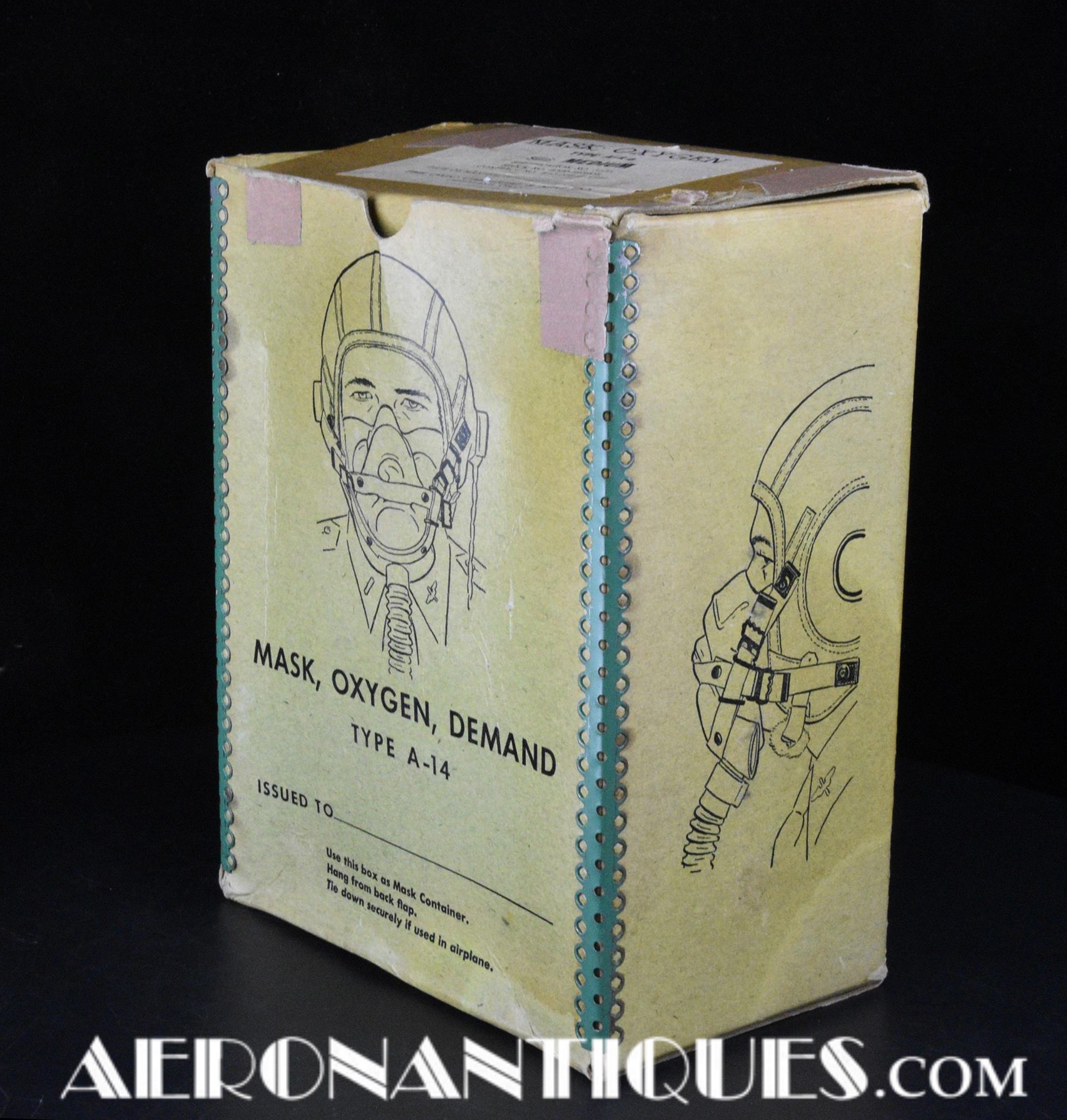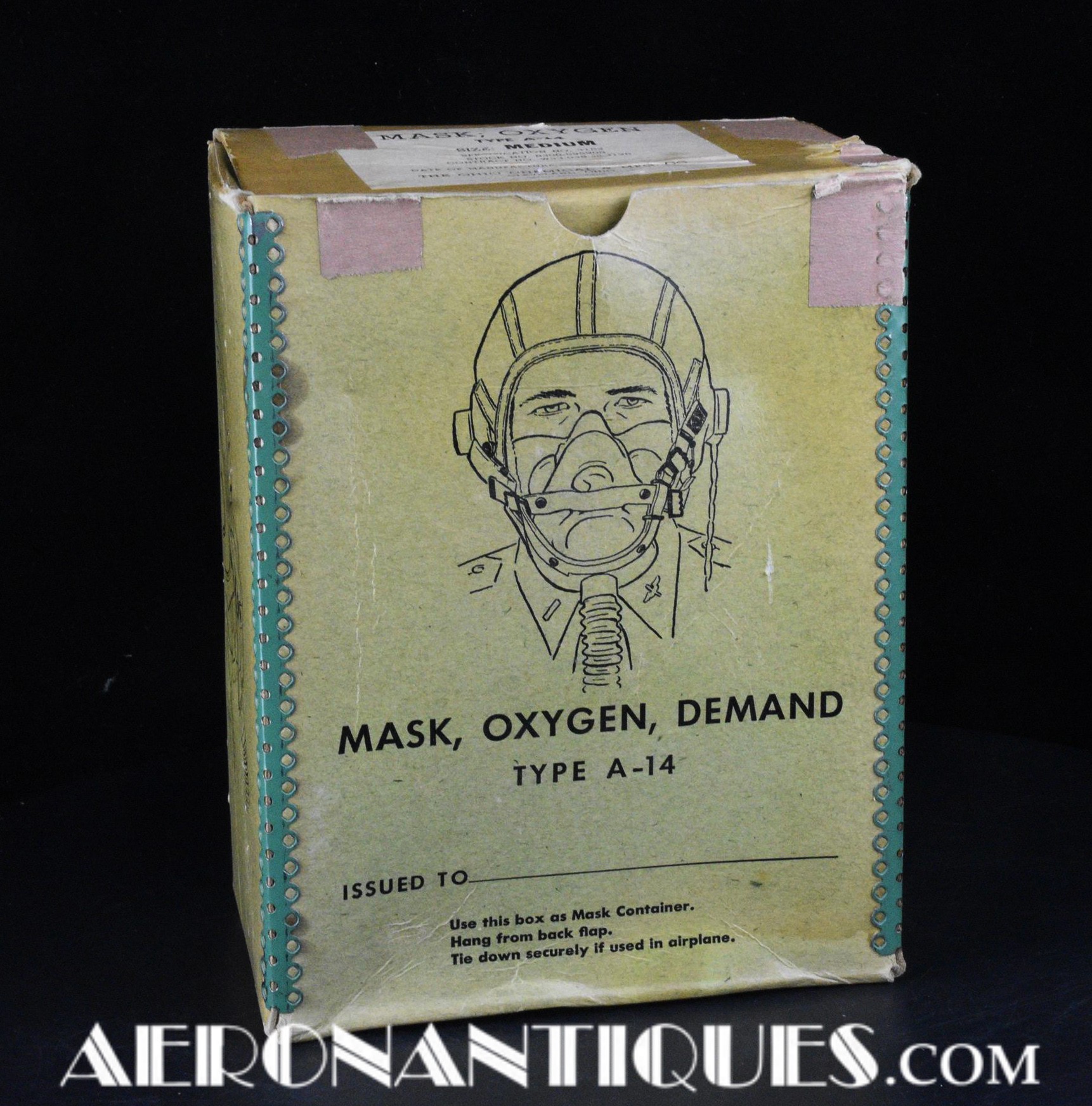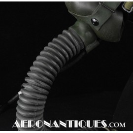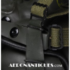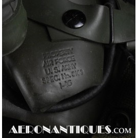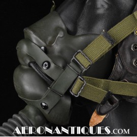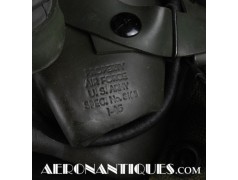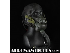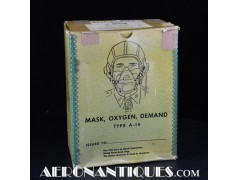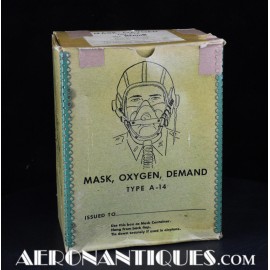 Masque à oxygène réglementaire de pilote de l'US Army Air Force type A-14. Taille MEDIUM. Daté 07/44. Fabrication OHIO CHEMICAL Co. neuf de stock, souple avec aucune faiblesse du caoutchouc, en boîte d'origine avec instructions et accessoires. Egalement inclus le microphone ANB-M-C1 monté d'origine avec son cordon et sa fiche. . Le masque à oxygène A-14 a été distribué à partir de Juillet 1943, aussi bien aux pilotes de l'US Army Air Force que ceux de l'US Navy et de l'US Marine Corps. Serre-tête et support de présentation ne sont pas inclus.