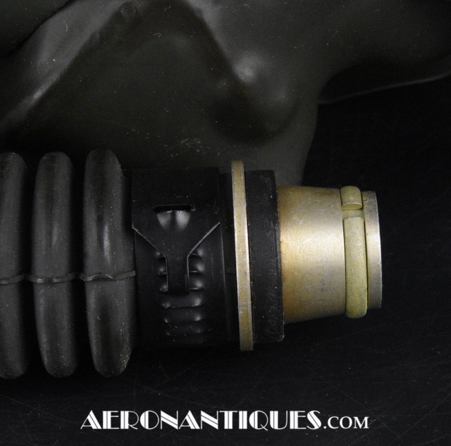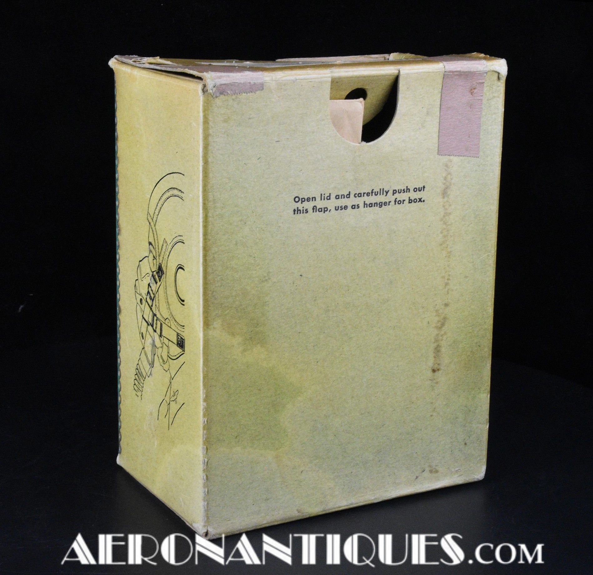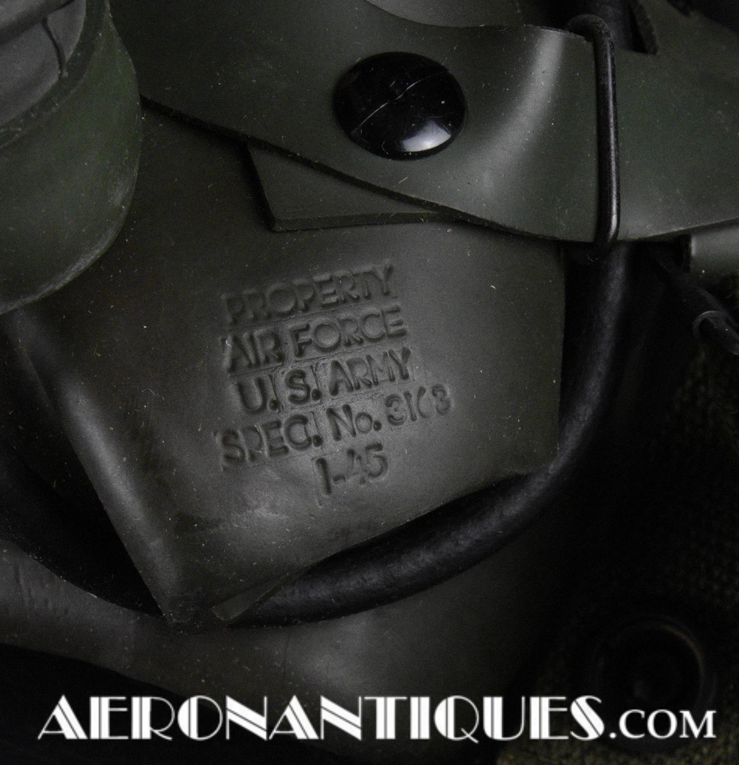Masque à oxygène réglementaire de pilote de l'US Army Air Force type A-14. Taille MEDIUM. Daté 07/44. Fabrication OHIO CHEMICAL Co. neuf de stock, souple avec aucune faiblesse du caoutchouc, en boîte d'origine avec instructions et accessoires. Egalement inclus le microphone ANB-M-C1 monté d'origine avec son cordon et sa fiche. . Le masque à oxygène A-14 a été distribué à partir de Juillet 1943, aussi bien aux pilotes de l'US Army Air Force que ceux de l'US Navy et de l'US Marine Corps. Serre-tête et support de présentation ne sont pas inclus.