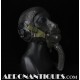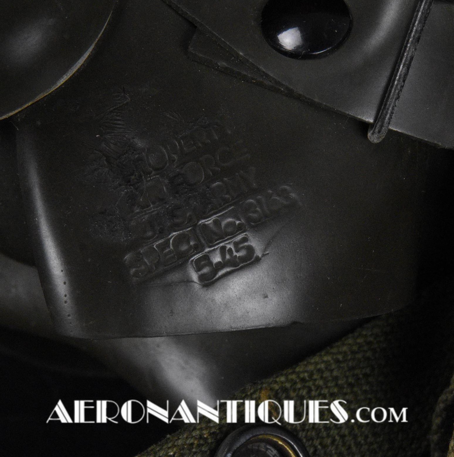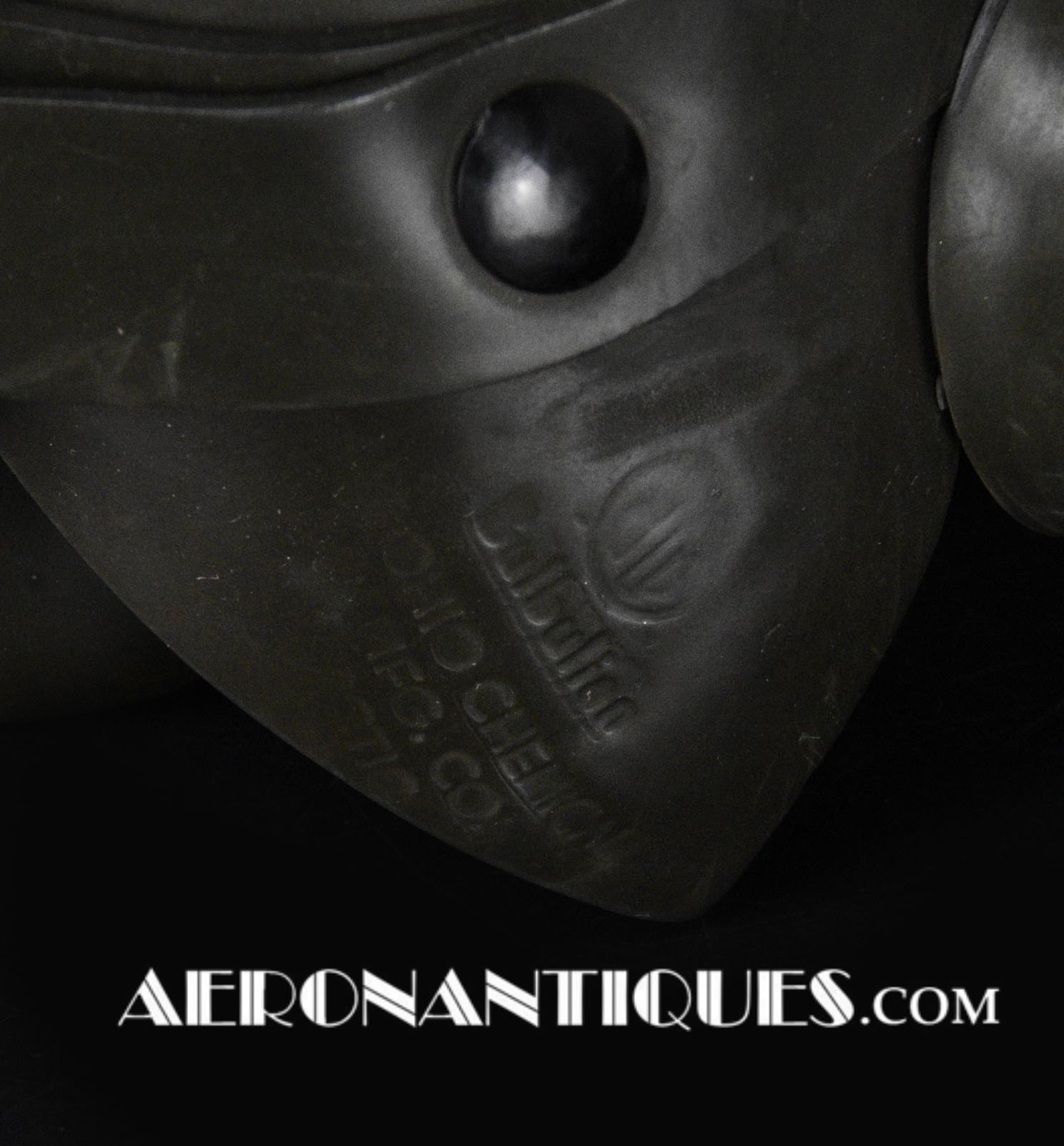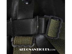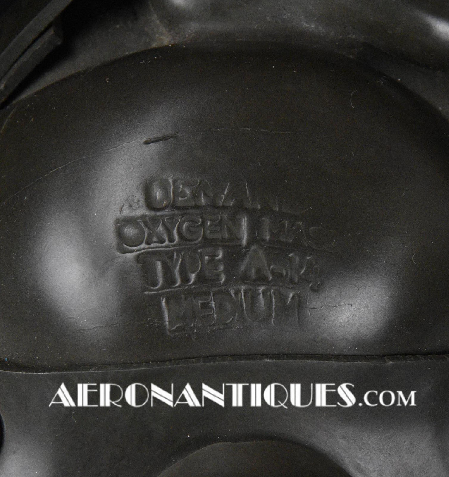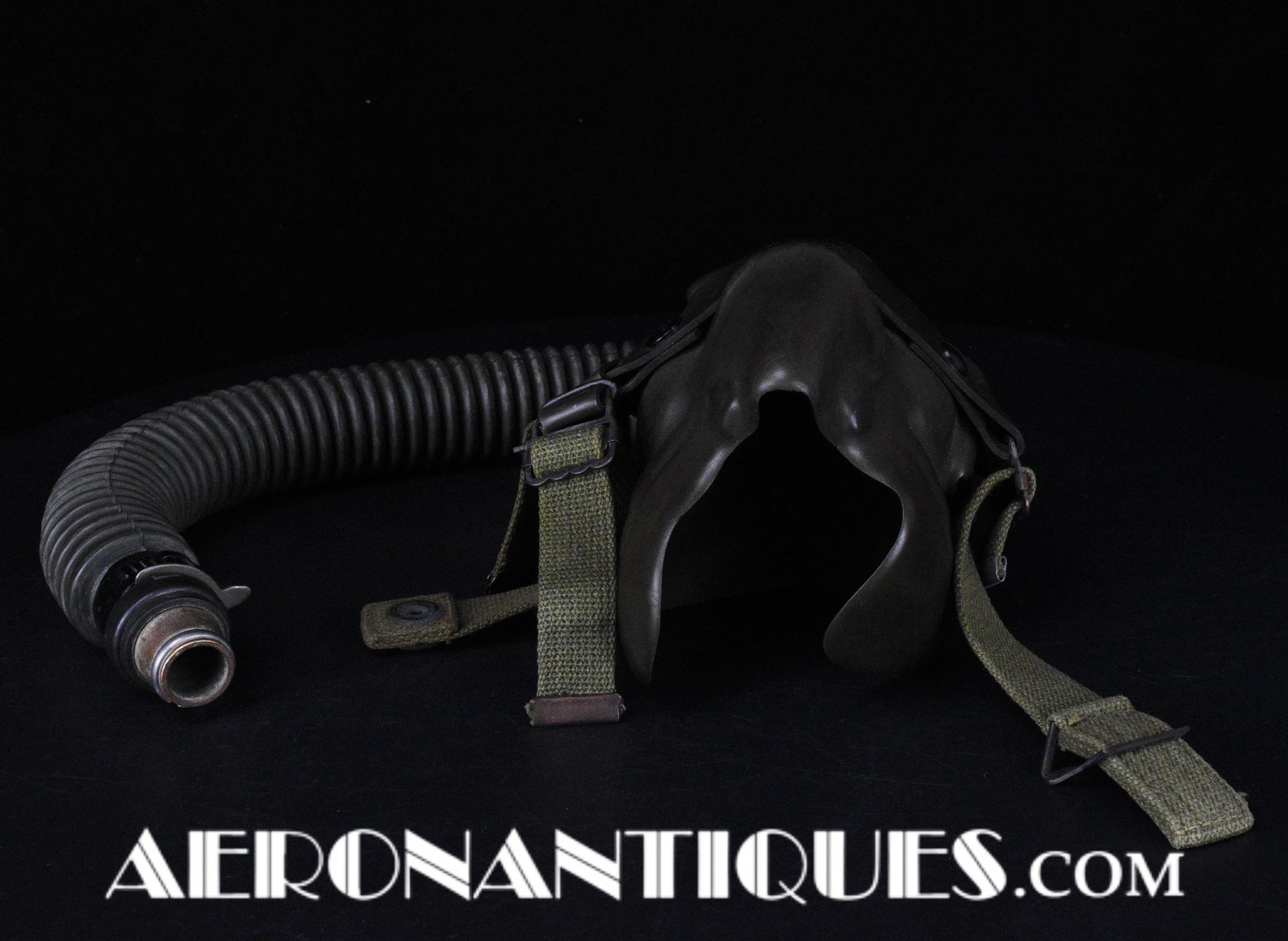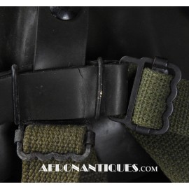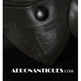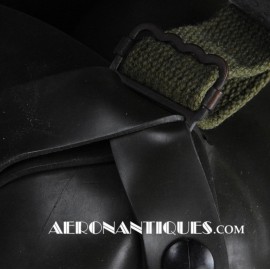 Masque à oxygène réglementaire de pilote de l'US Army Air Force type A-14. Taille MEDIUM. Daté 05/45. Fabrication OHIO CHEMICAL Co. Bon état général, souple et harnais de suspension en caoutchouc non sectionné. Modèle modifié 8th Air Force avec pastilles anti-gel. Le masque à oxygène A-14 a été distribué à partir de Juillet 1943, aussi bien aux pilotes de l'US Army Air Force que ceux de l'US Navy et de l'US Marine Corps. Serre-tête et support de présentation ne sont pas inclus.