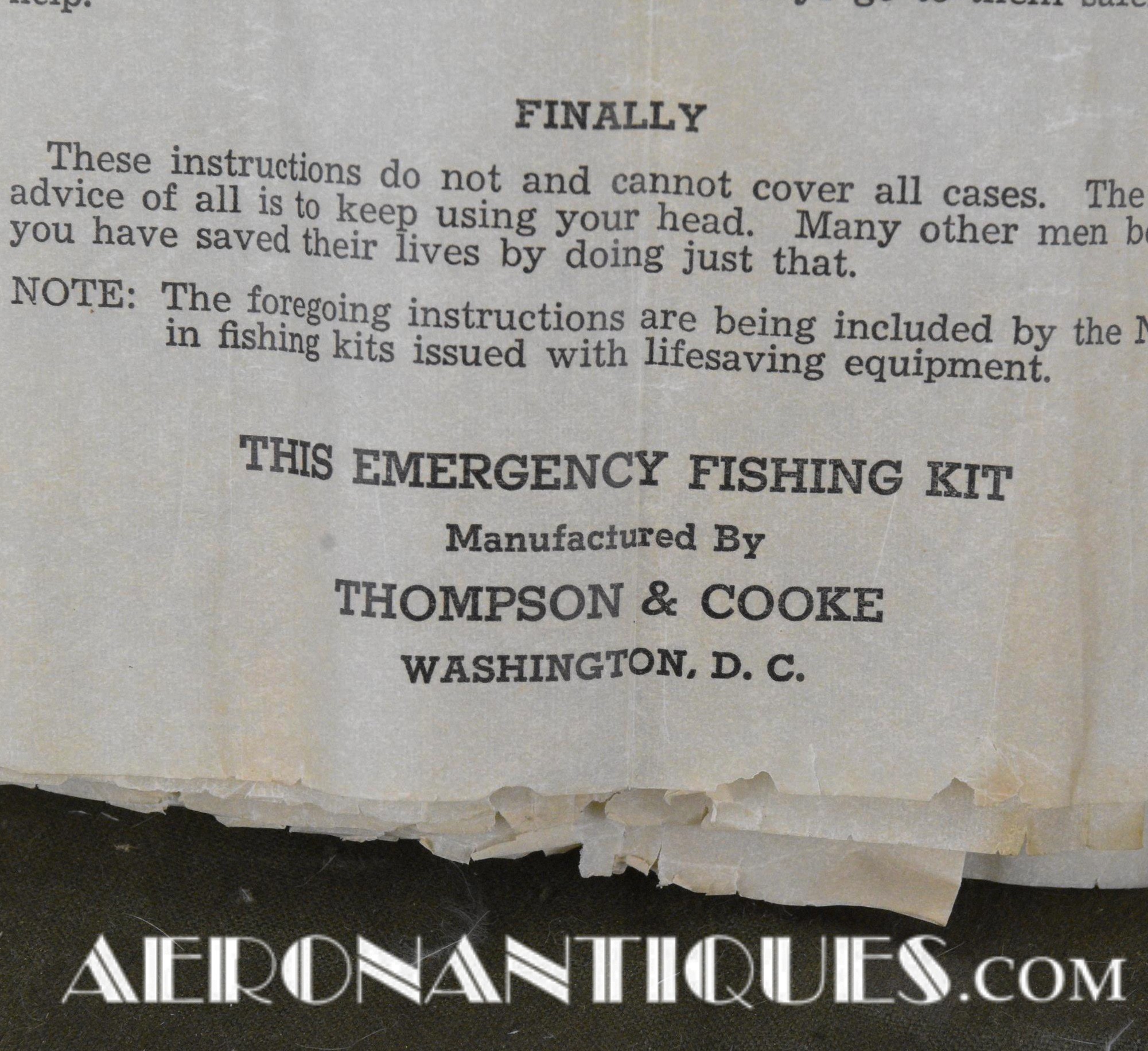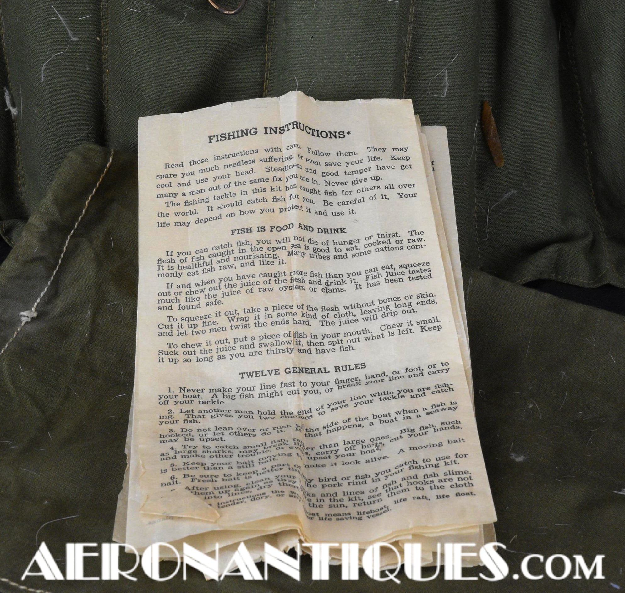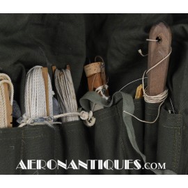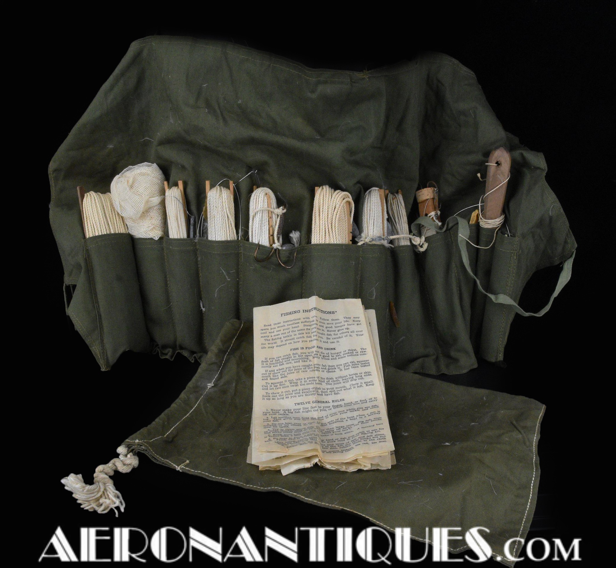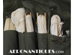 Kit de pêche de survie US Navy ou US Army Air Force. Type tablier. Fabrication US WWII. Excellent état avec tous ses accessoires et pochette de transport en toile de coton HBT #OD7.