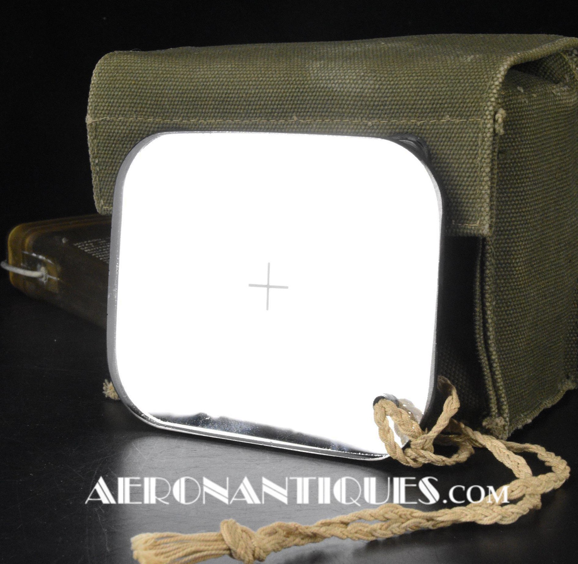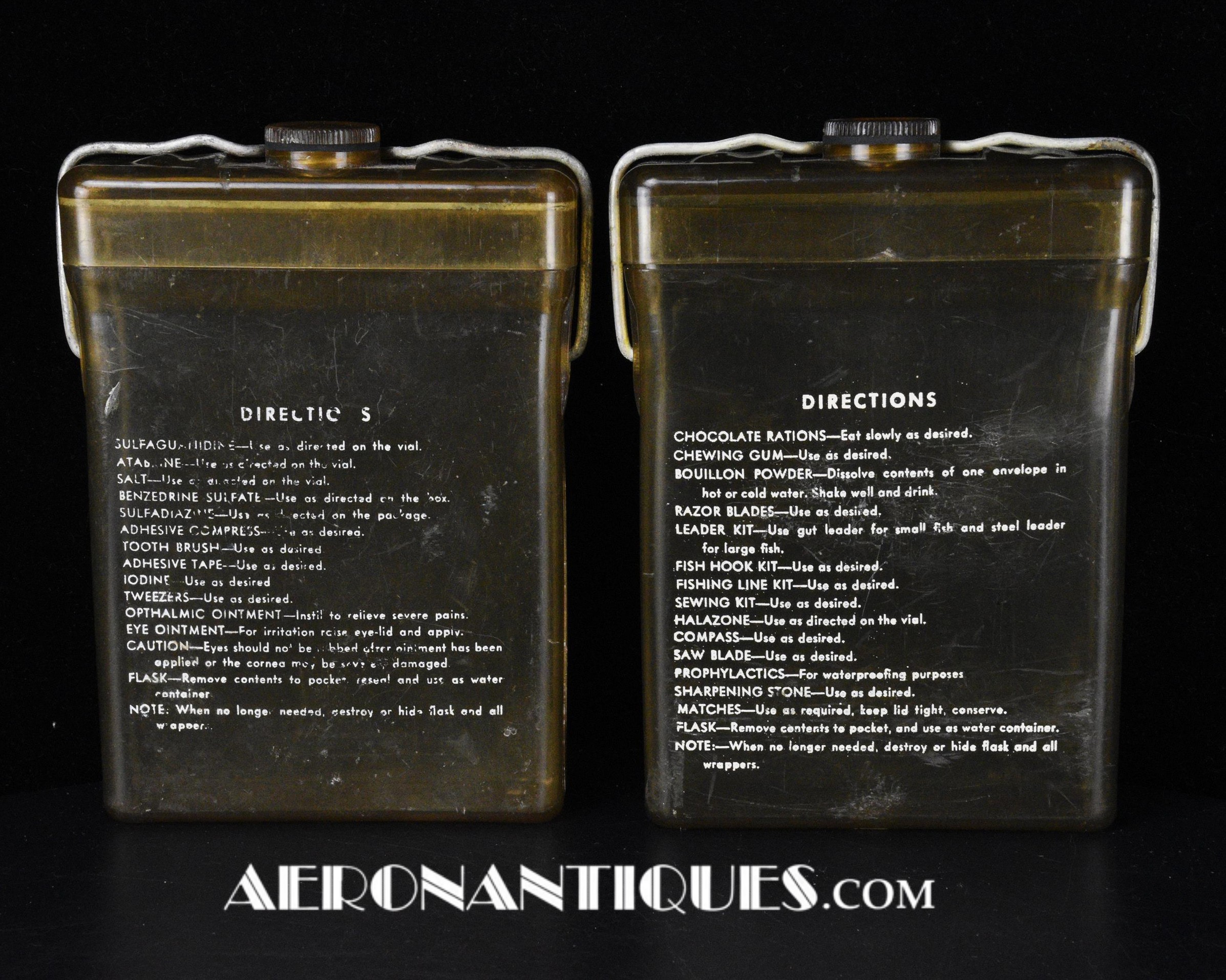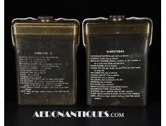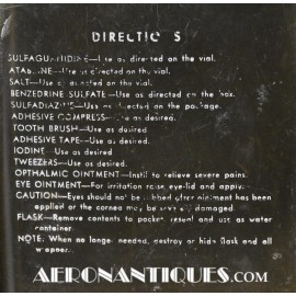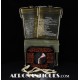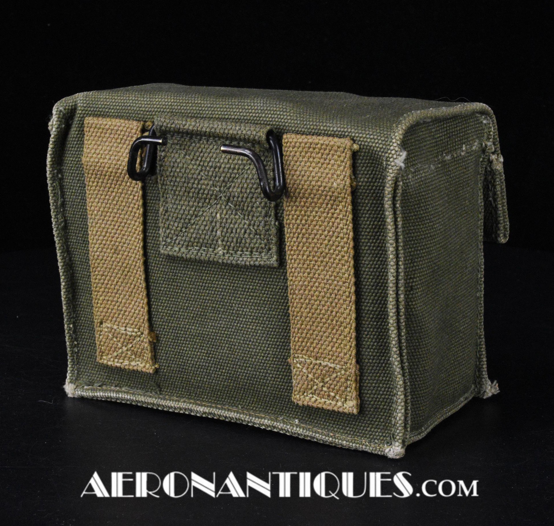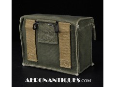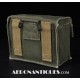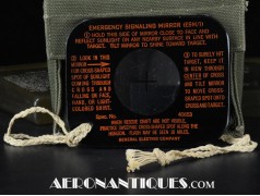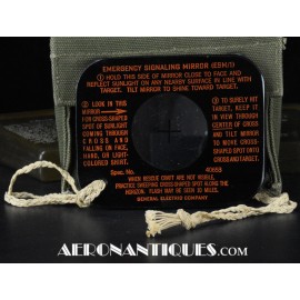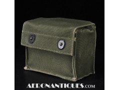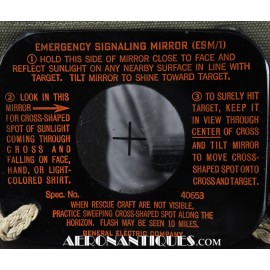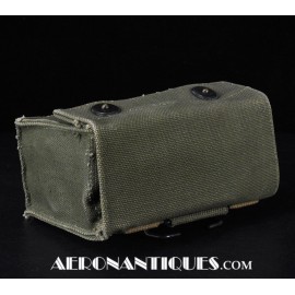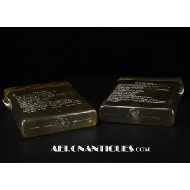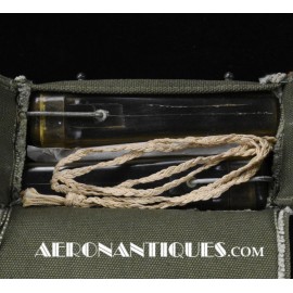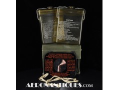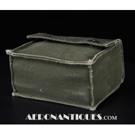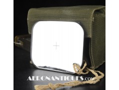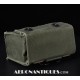 Pochette en toile canvas OD#7 pour le kit de survie E-17 en deux parties (rations/survie+médical), avec le miroir de signalisation d'urgence type ESM/1 et ses deux containers en plastique (vides).