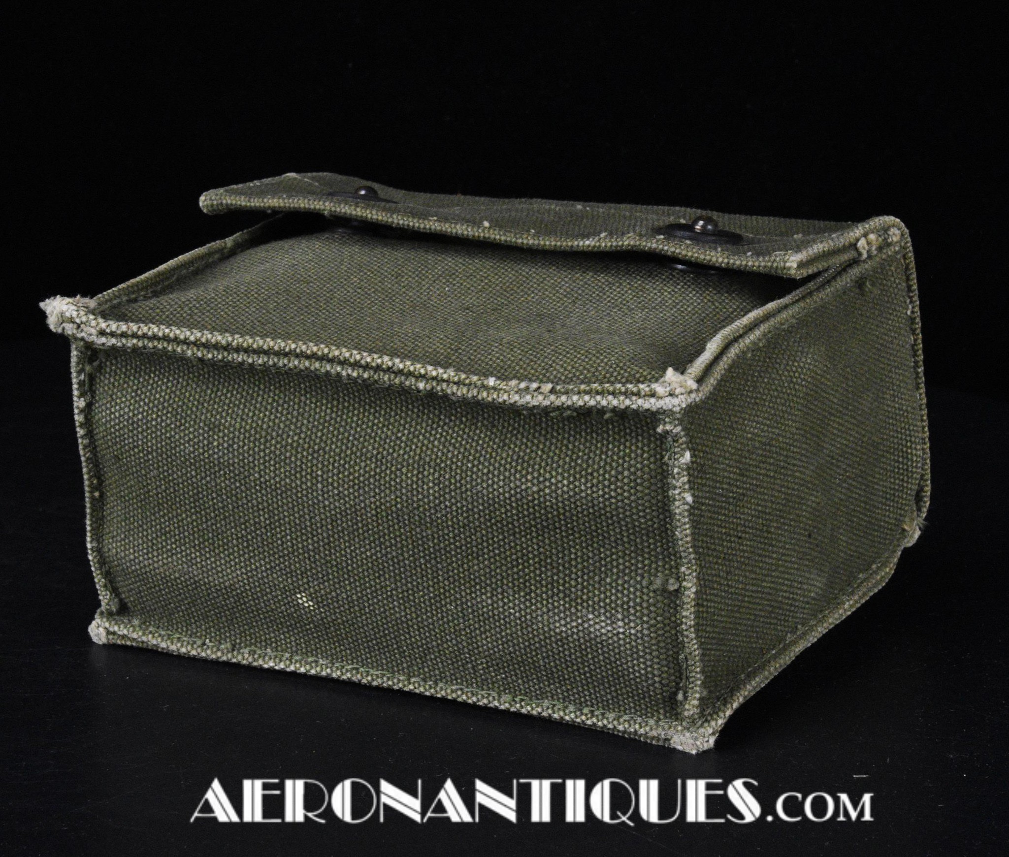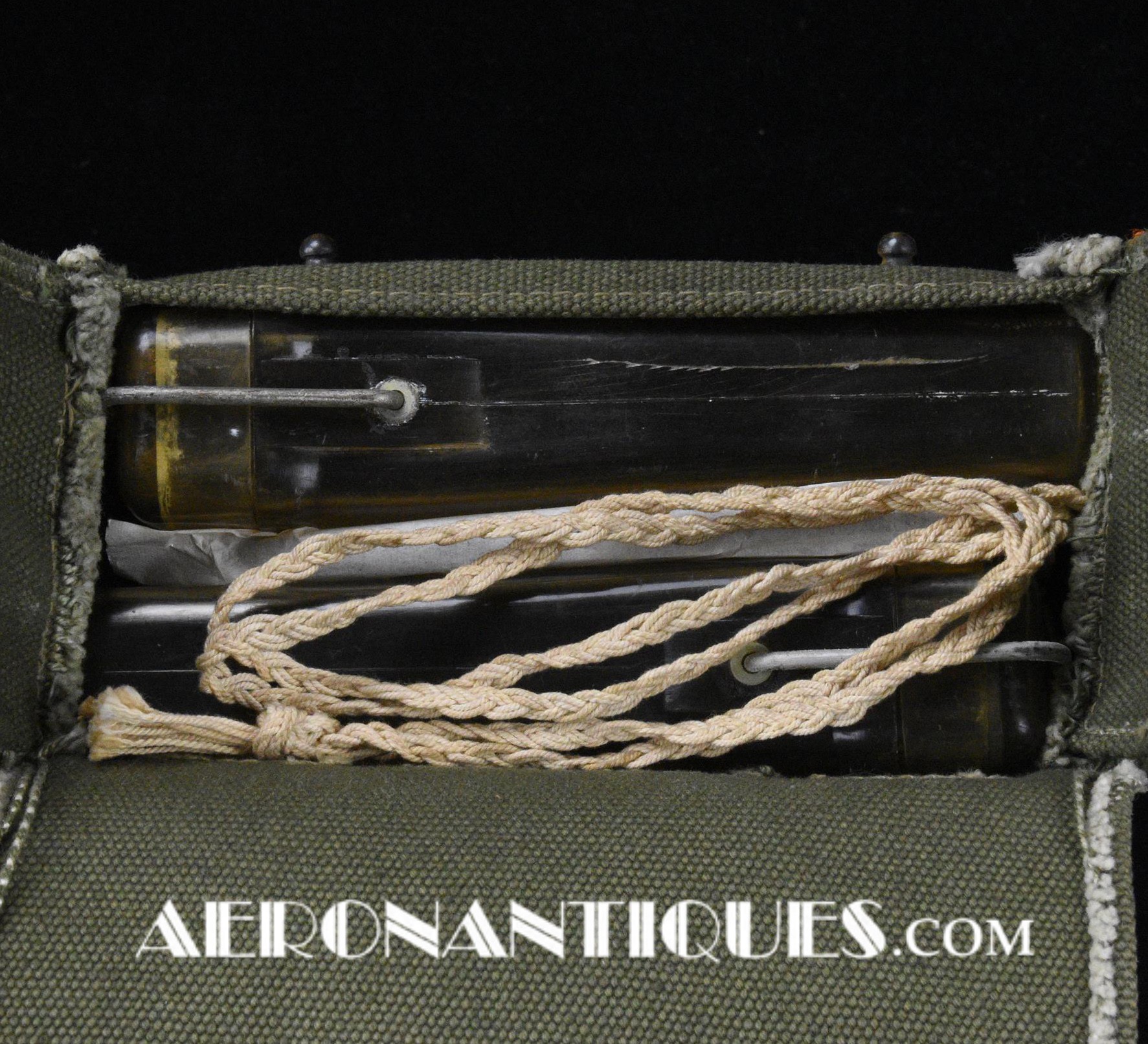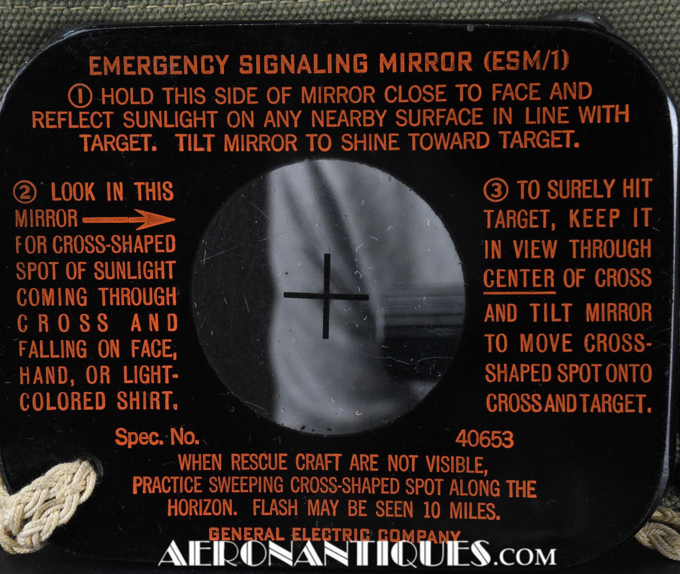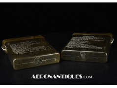 Pochette en toile canvas OD#7 pour le kit de survie E-17 en deux parties (rations/survie+médical), avec le miroir de signalisation d'urgence type ESM/1 et ses deux containers en plastique (vides).