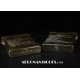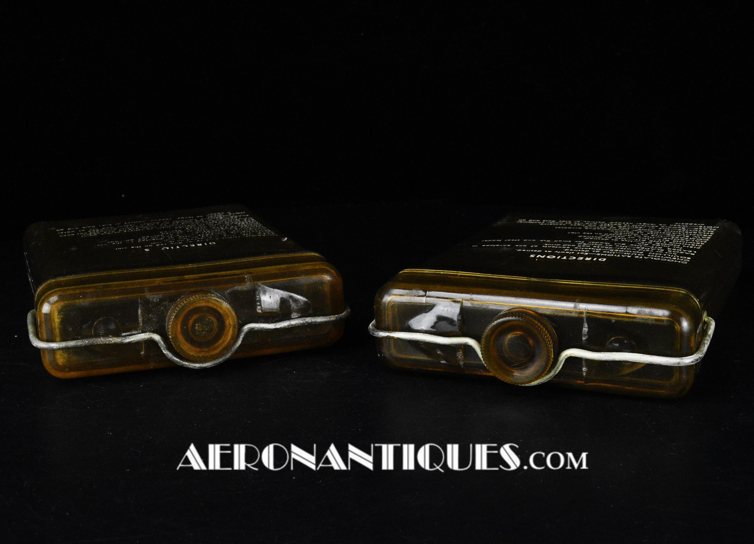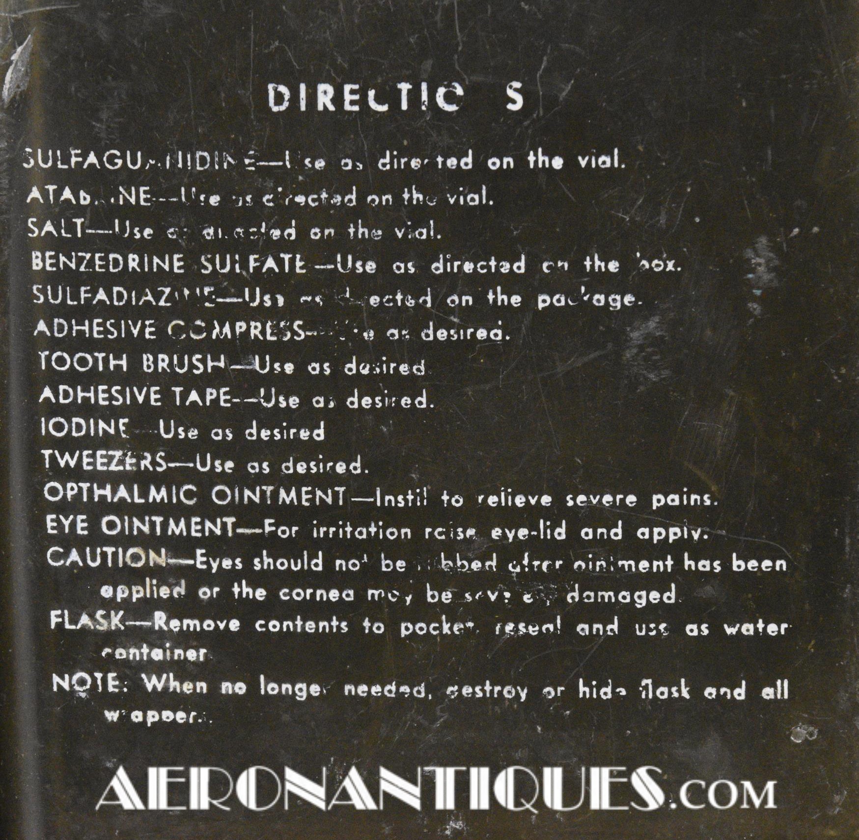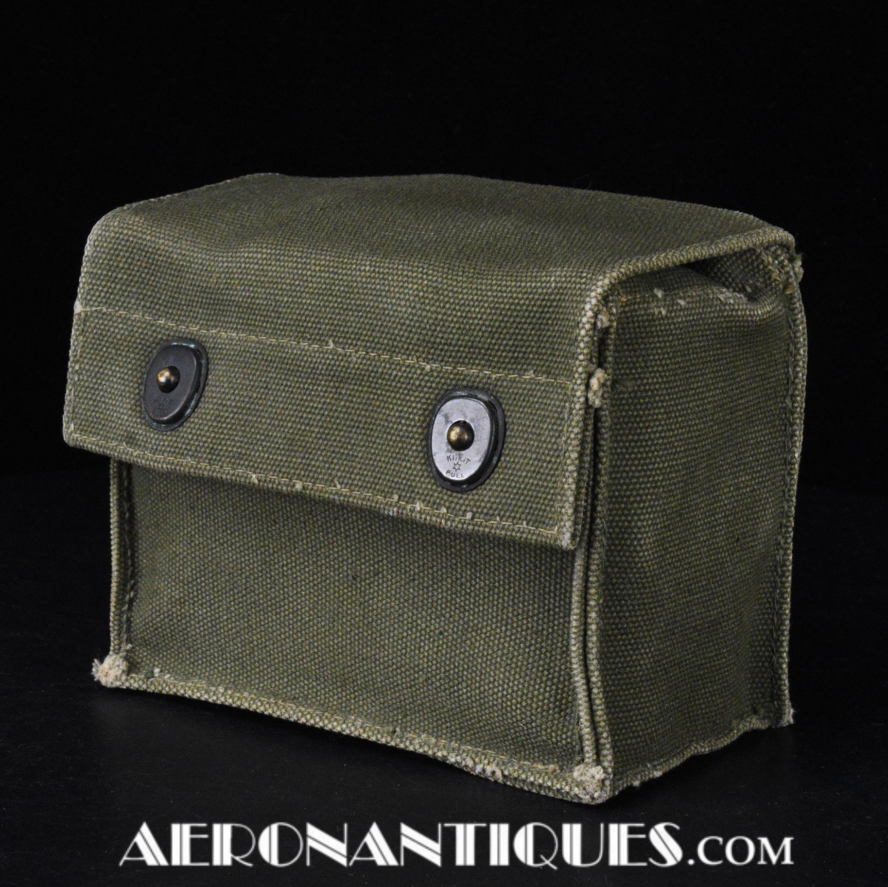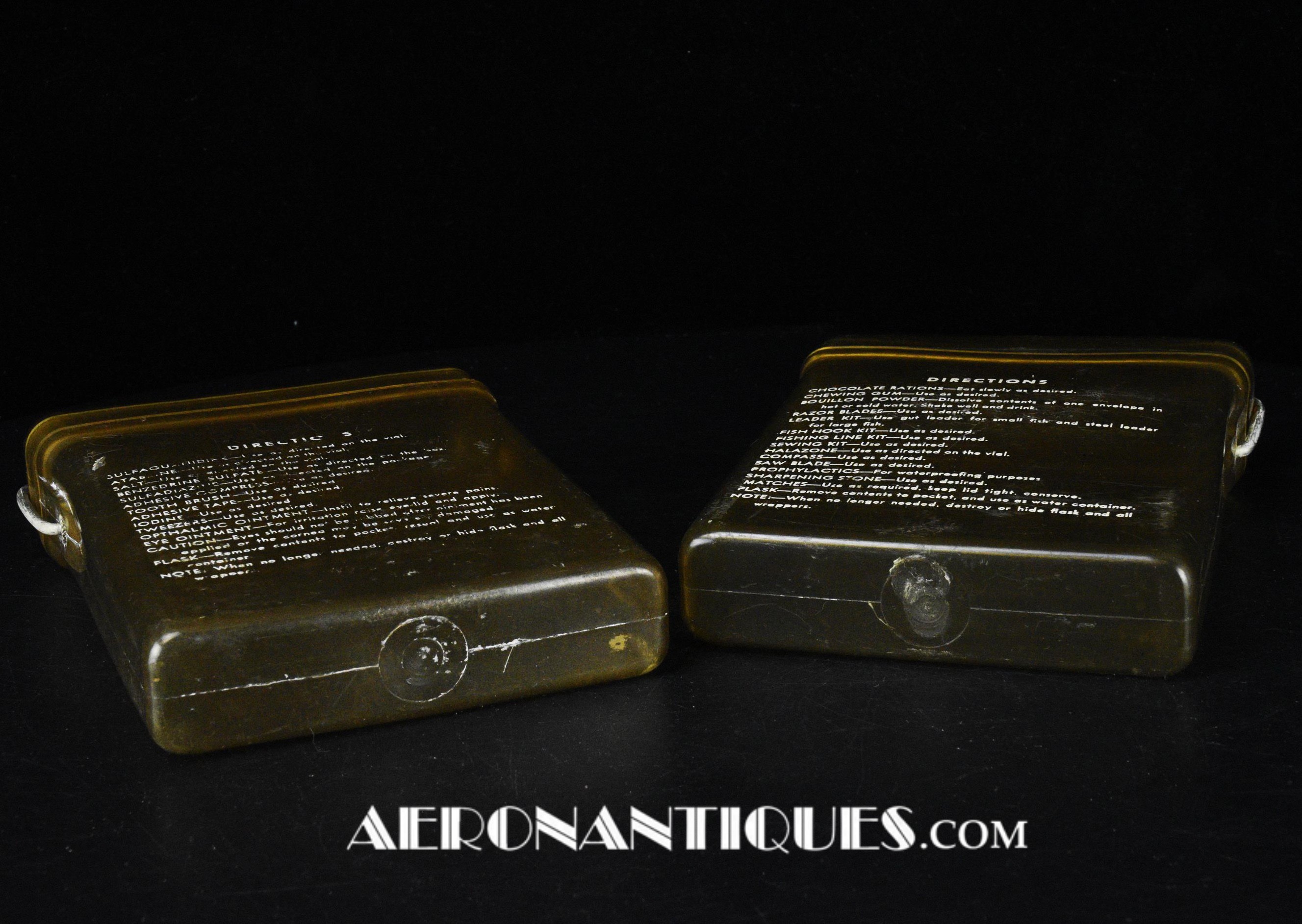 Pochette en toile canvas OD#7 pour le kit de survie E-17 en deux parties (rations/survie+médical), avec le miroir de signalisation d'urgence type ESM/1 et ses deux containers en plastique (vides).