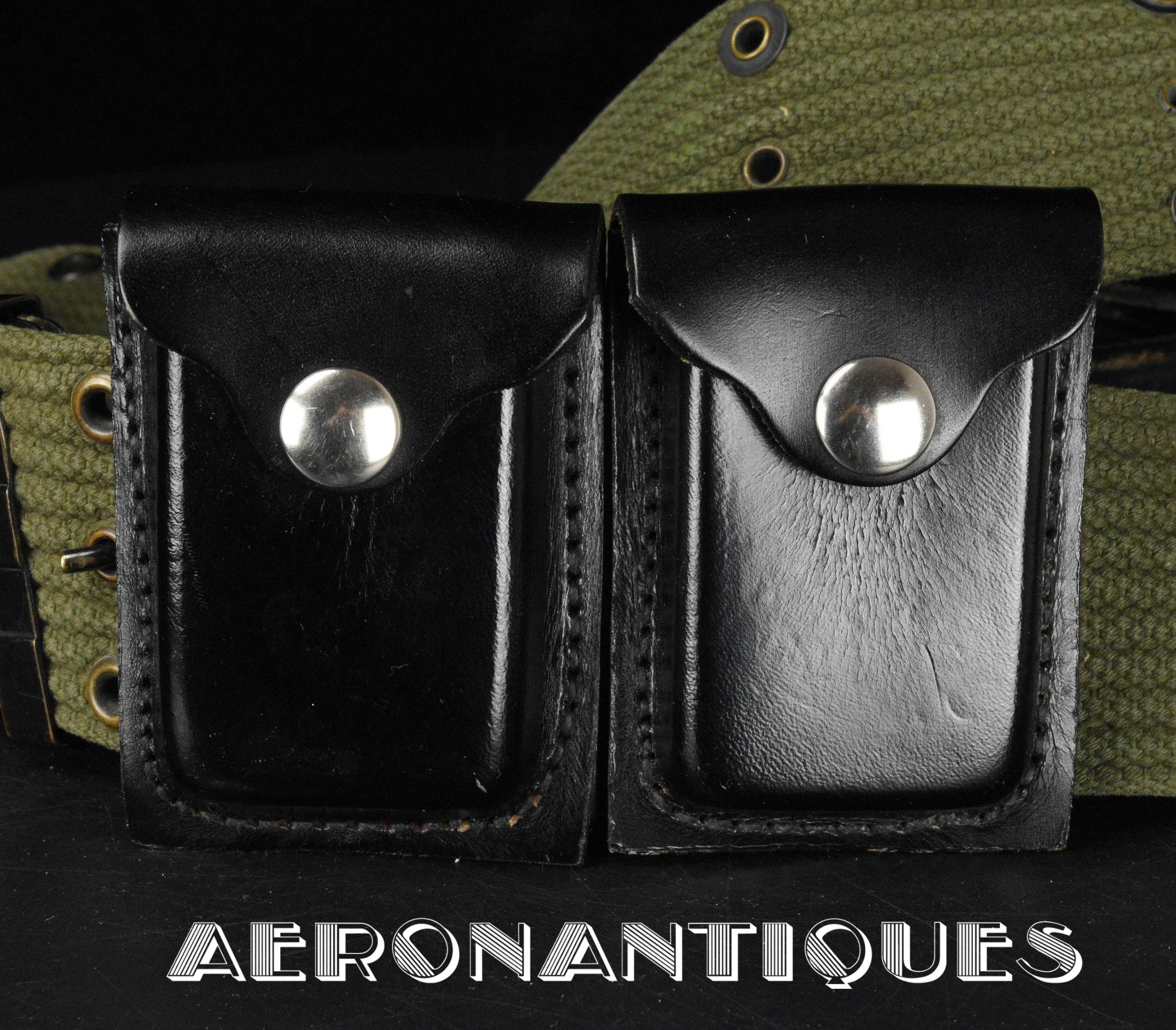Ensemble ceinturon, holster USAF et cartouchière cuir d'un pilote de l'US Air Force période Vietnam. Le ceinturon est un modèle réglementaire M-1956. Le holster en cuir noir est un modèle GUU-1/P réglementaire de l'US Air Force daté 1966. Cartouchières USAF en cuir noir datées 1976. Ensemble caractéristique du type d'équipement porté par les pilotes de l'US Air Force et certains pilotes d'hélicoptère de l'US Army durant la guerre du Vietnam, dont le célèbre As Robin Olds (voir photo). Incontournable pour finaliser un mannequin de pilote.