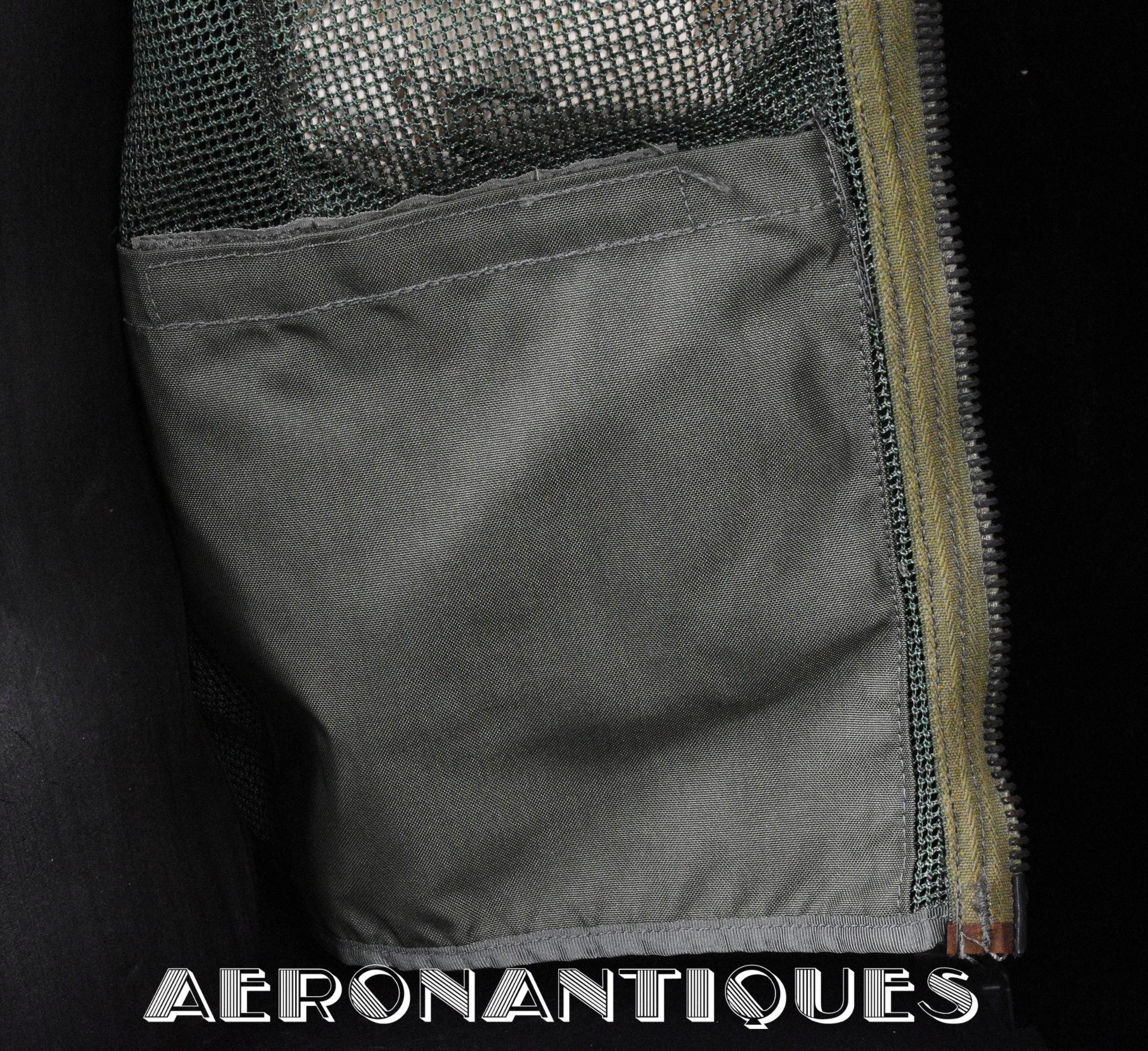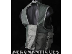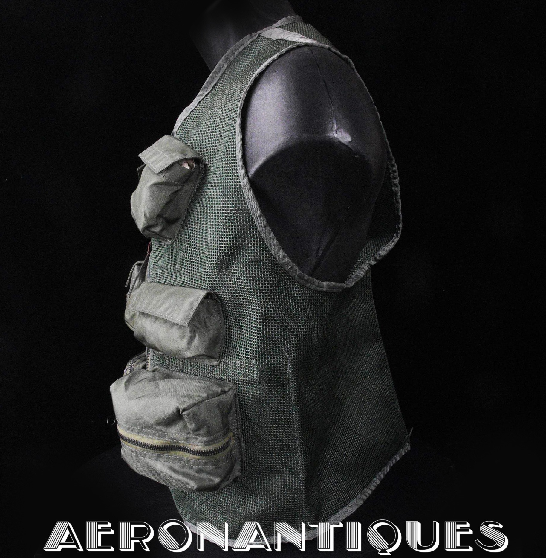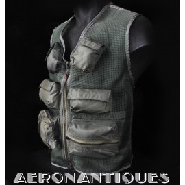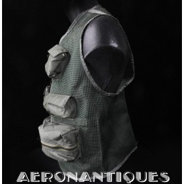 Gilet de survie de pilote US Air Force et US Army modèle SRU-21/P. Second modèle avec poches à fermeture par auto-agrippant. Poche de radio RT-10. Nombreuses poches pour rations et divers accessoires de survie. Taille MEDIUM. Daté 1975. Fabrication GREENBRIER INDUSTRIES. Ces gilets équipaient les pilotes de chasse, transport, bombardier et observation de l'US Air Force ainsi que les pilotes d'hélicoptère de l'US Army.