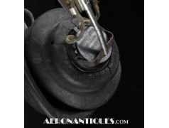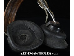 Écouteurs HS-33 pour équipages de bombardiers. Il est composé d'un serre-tête HB-7 gainée de cuir, de rares caoutchoucs noirs de forme "cloche" précoces (identiques aux HS-23 de couleur marron) et d'écouteurs bakélite type ANB-H-1 fabrication CHICAGO. Fiche type PL-354. Parfait pour présenter une casquette 50 missions. Casquette et lunettes non incluses.