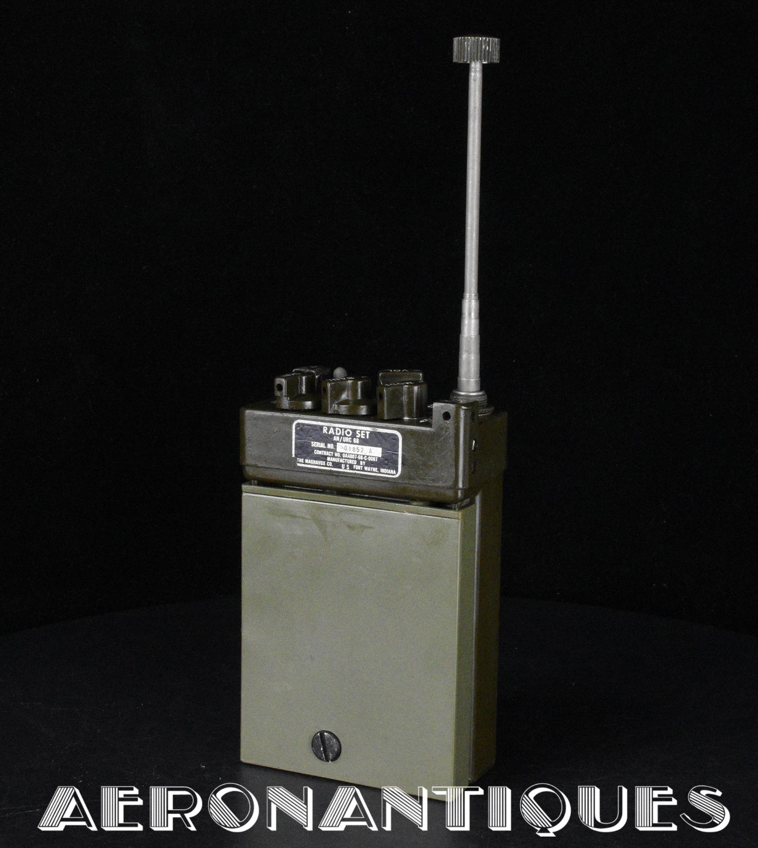 Très rare radio de survie pour pilotes de l'US Air Force et US Navy modèle URC-68 datée 1968 fabrication MAGNAVOX. Antenne rétractable. Avec sa rare batterie d'origine dans sa boîte d'origine. Cette radio produite à la fin des années 60 équipait les gilets de survie SRU-21 des pilotes de l'USAF ou SV-1/SV-2 de l'US Navy. Également utilisée par les pilotes de l'US Army et certaines unités des Forces Spéciales pendant la Guerre du Vietnam. Elle sera remplacée à partir du début des années 70 par la PRC-90.