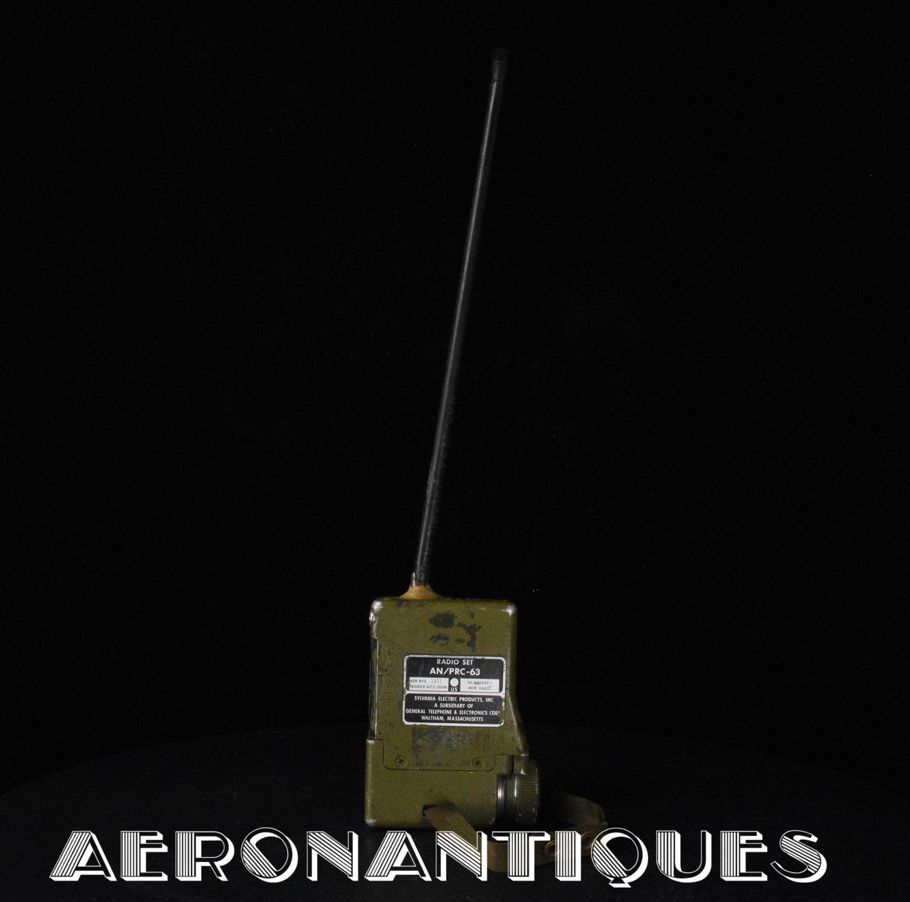 Radio de survie pour pilote de l'US Navy modèle AN/PRC-63. Datée 1967. Fabrication SYLVANIA ELECTRIC PRODUCTS. Complète avec antenne souple fixe. Indispensable pour compléter un gilet de survie SV-1 ou SV-2 d'un pilote de l'US Navy période Vietnam.