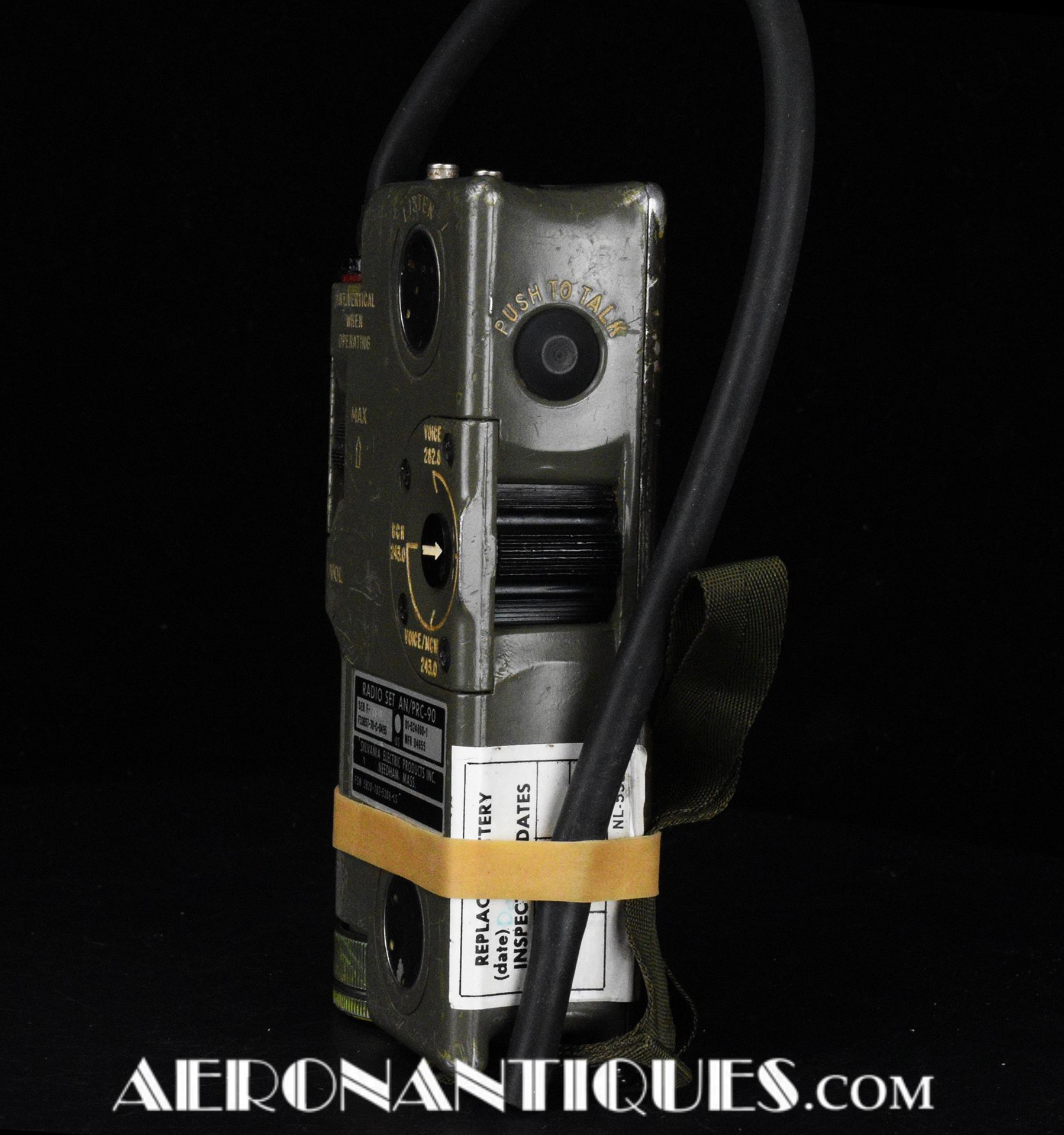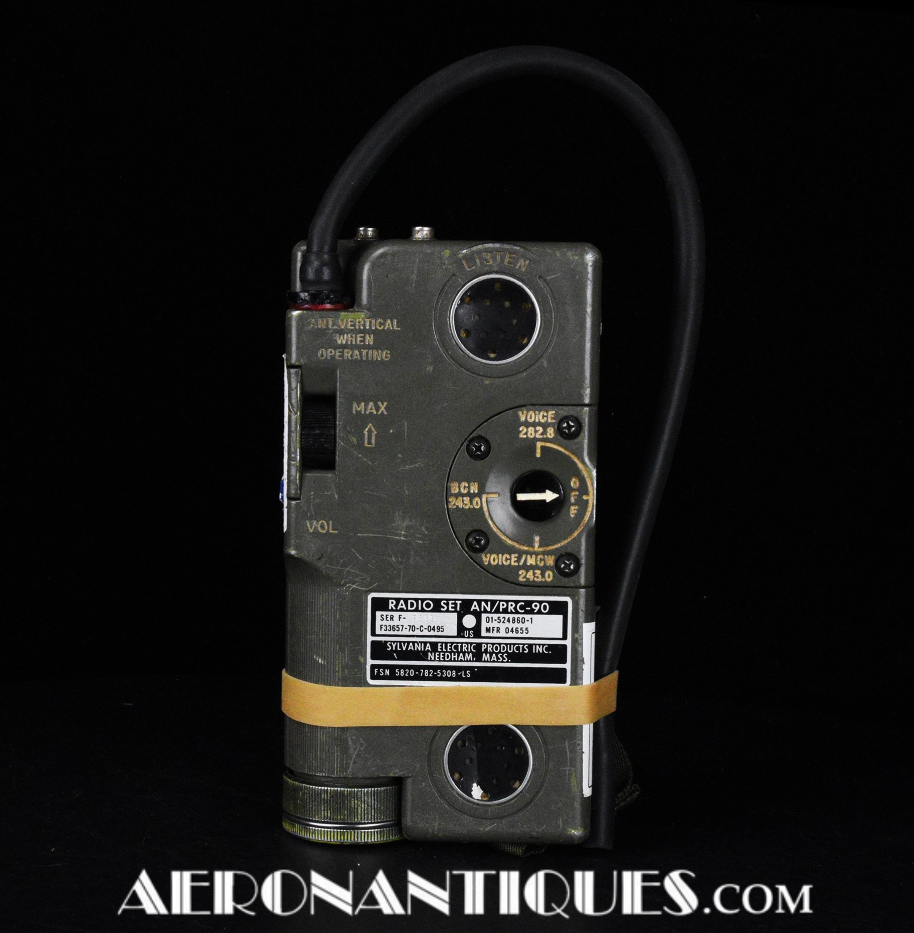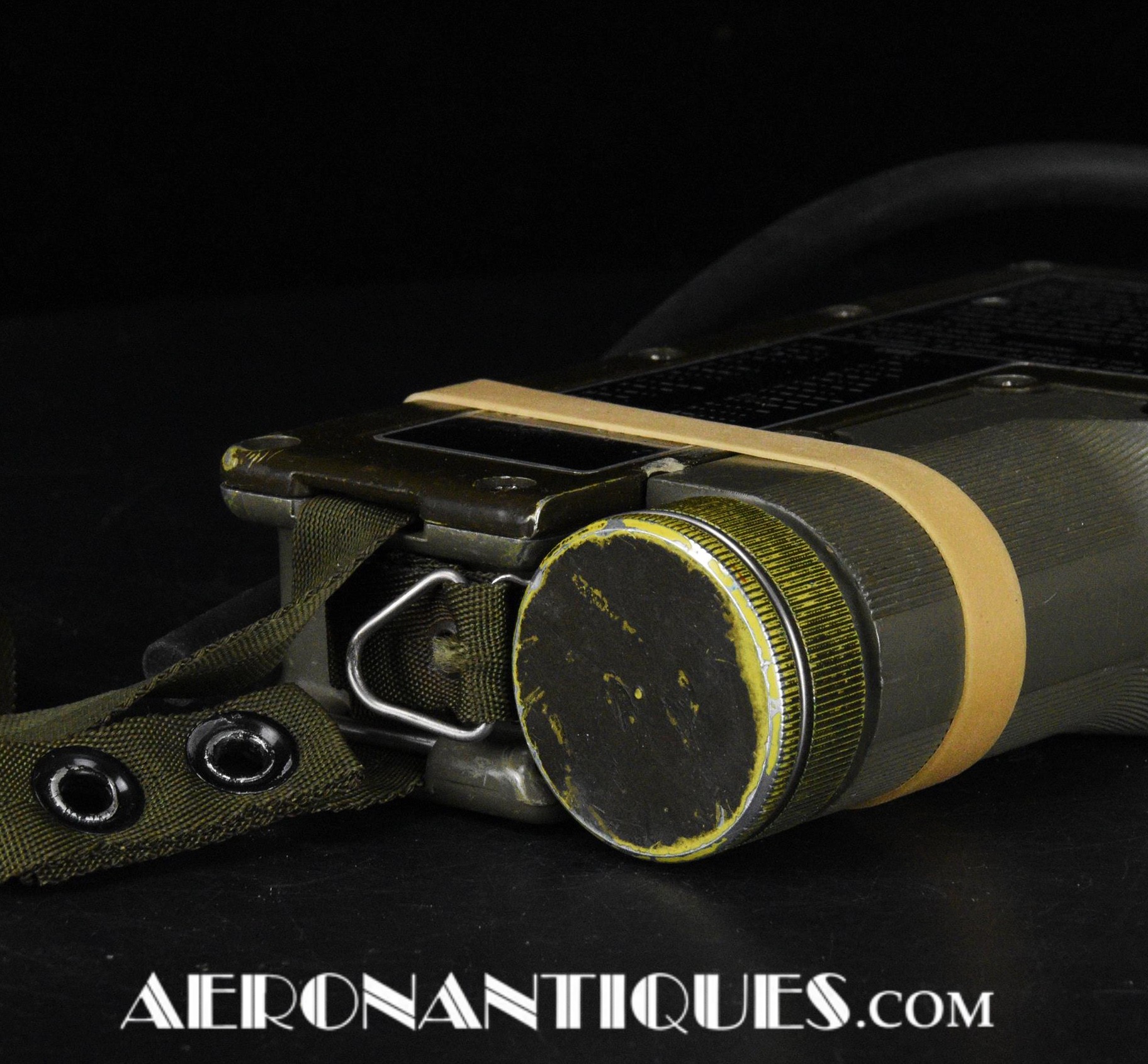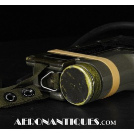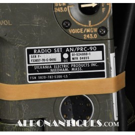 Radio de survie camouflée pour pilote de l'US Navy, Marine Corps ou Air Force, modèle AN/PRC-90. Datée 1970, fabrication SYLVANIA ELECTRIC PRODUCTS INC. Complète avec antenne souple 1/4 d'onde. Indispensable pour compléter un gilet de survie SV-2A/B de l'US Navy ou SRU-21 de l'US Air Force. Ces radios mises au point à la fin des années 60 et encore utilisées jusqu'à la Guerre du Golfe, étaient destinées à assurer la liaison terre/air avec les pilotes abattus au sol et leurs équipes de sauvetage.