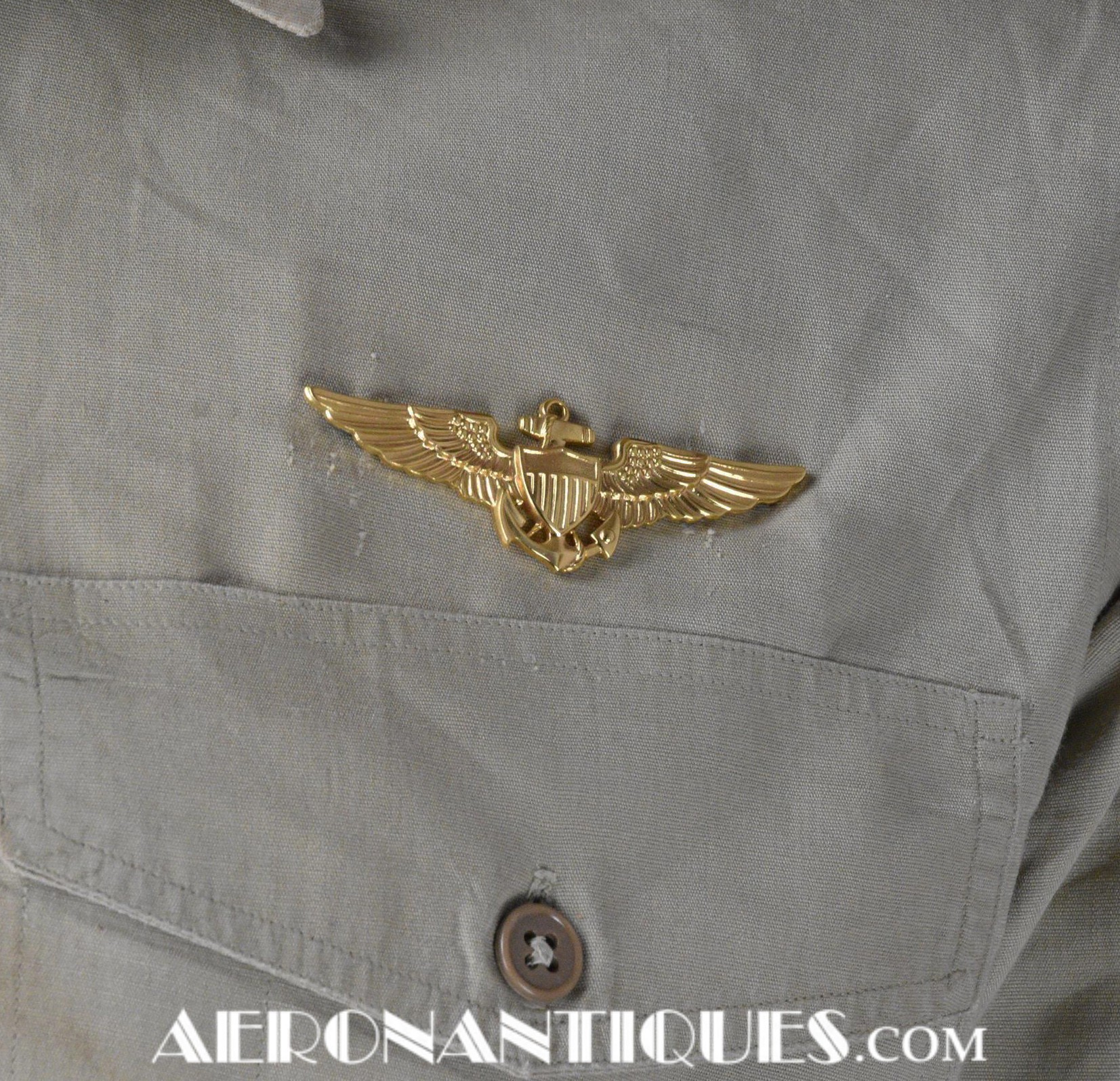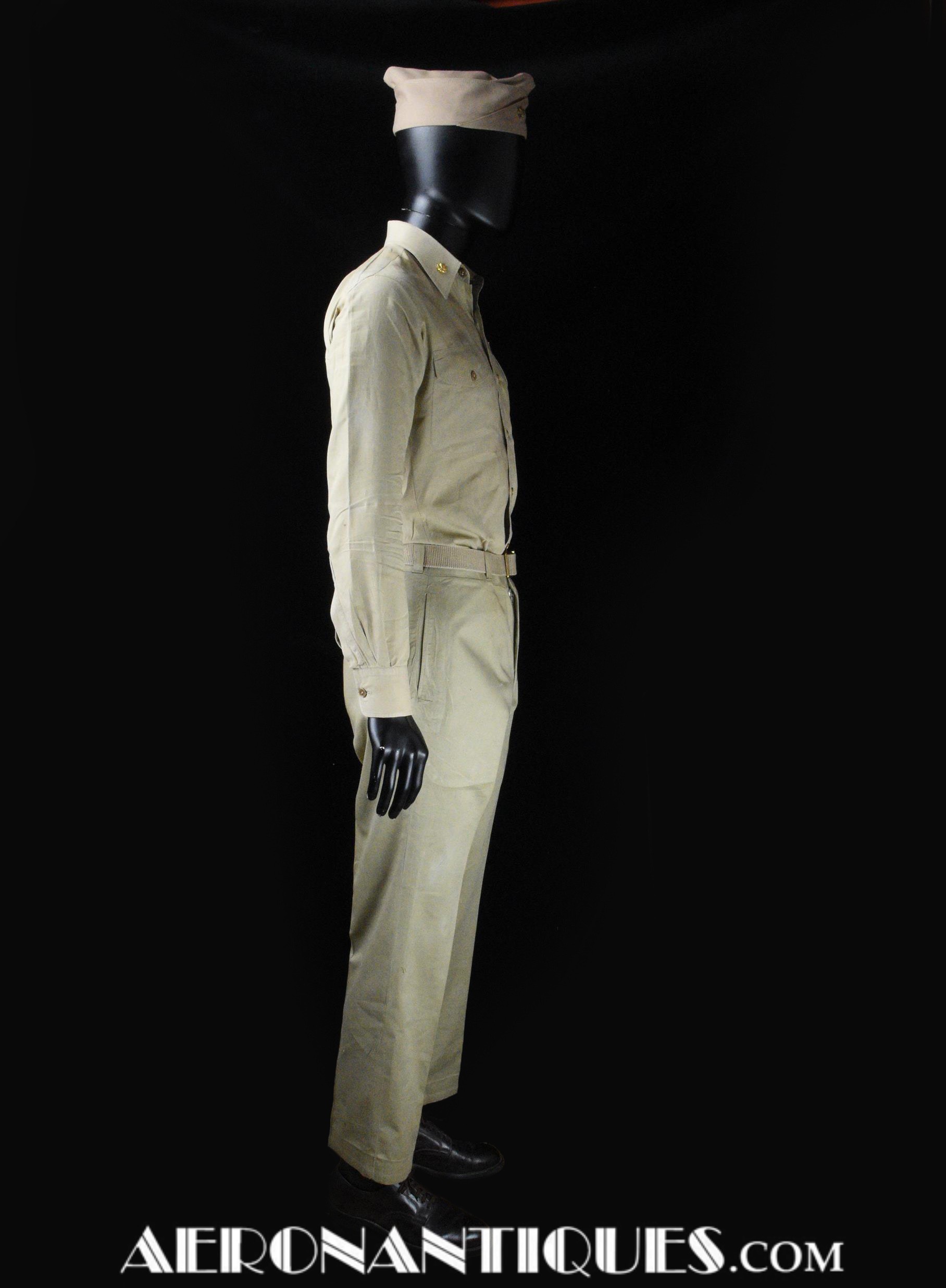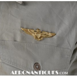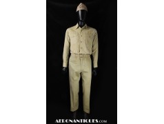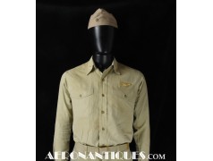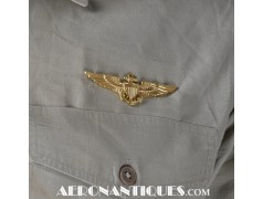 Tenue de service été originale d'un pilote Lcdr US Navy ou Major US Marine Corps incluant calot, chemise, ceinture, pantalon et chaussures. Période années 60 mais utilisable pour de la reconstitution ou une imitation du Major Boyington dans les Têtes Brûlées. Grades de Major/Lcdr sur la chemise et le calot, brevet aéronaval grand modèle sur la chemise. Calot fabrication BANCROFT. Quelques taches de café sur la chemise.Chaussures réglementaires avec semelle et talons d'origine.