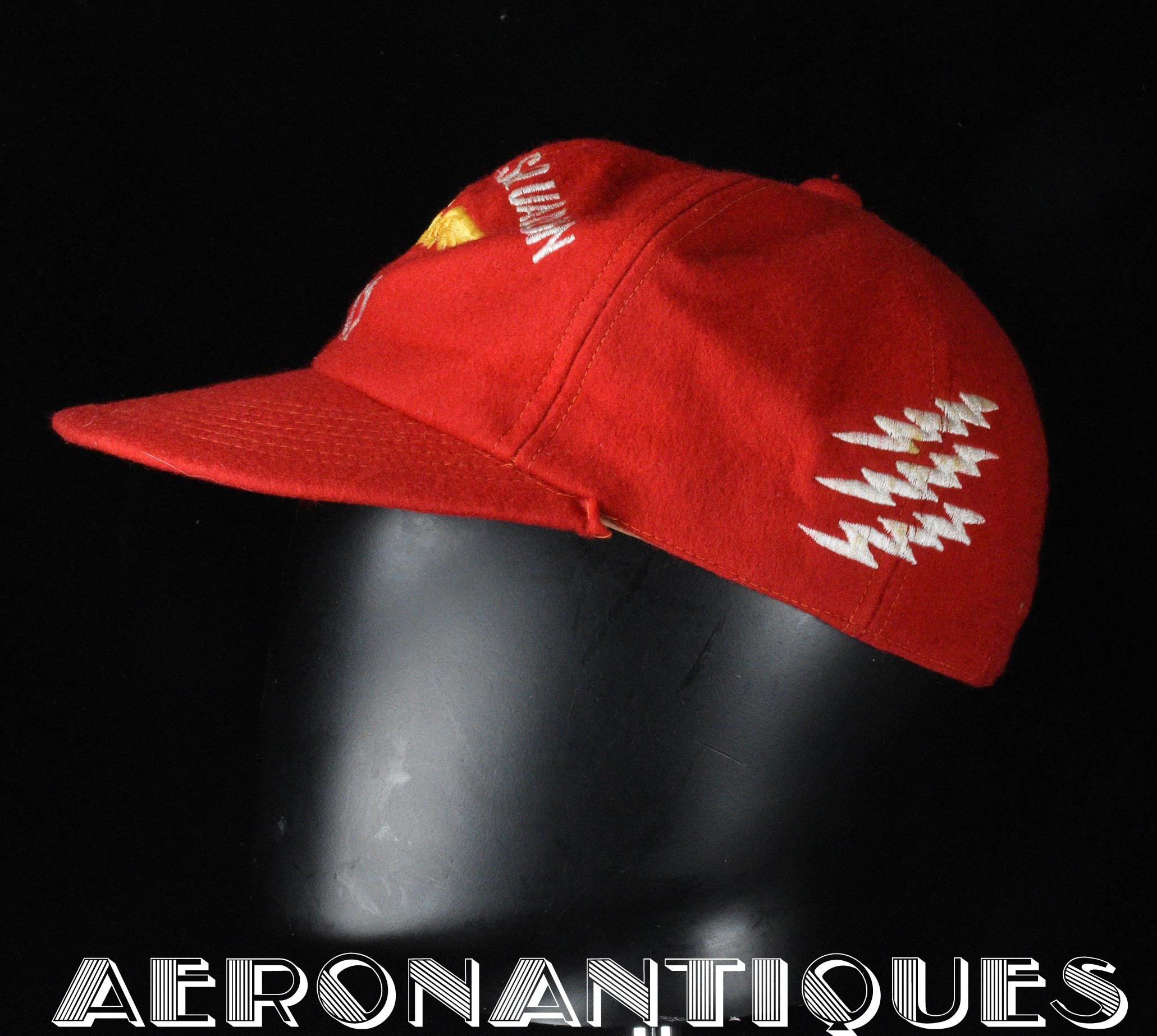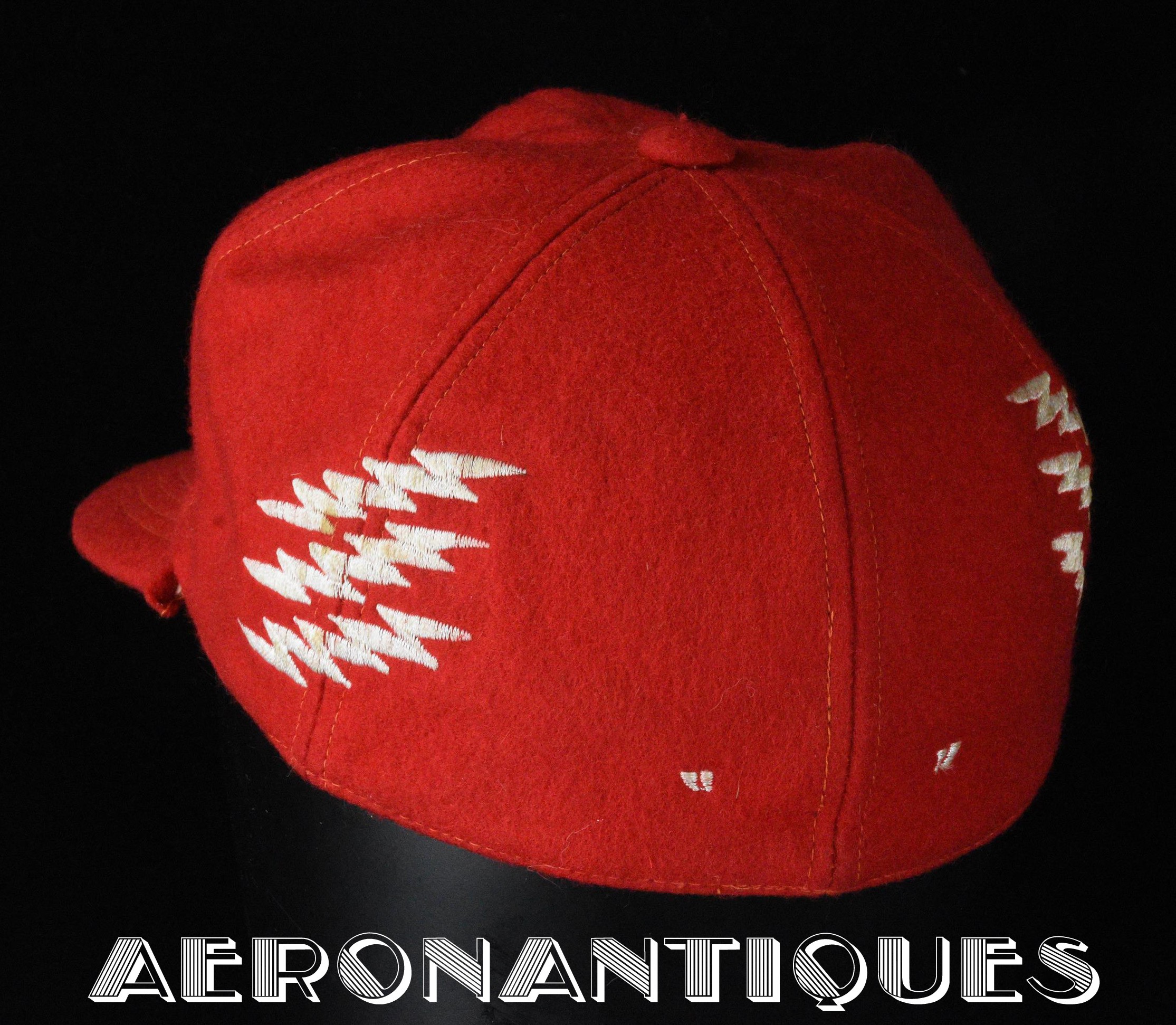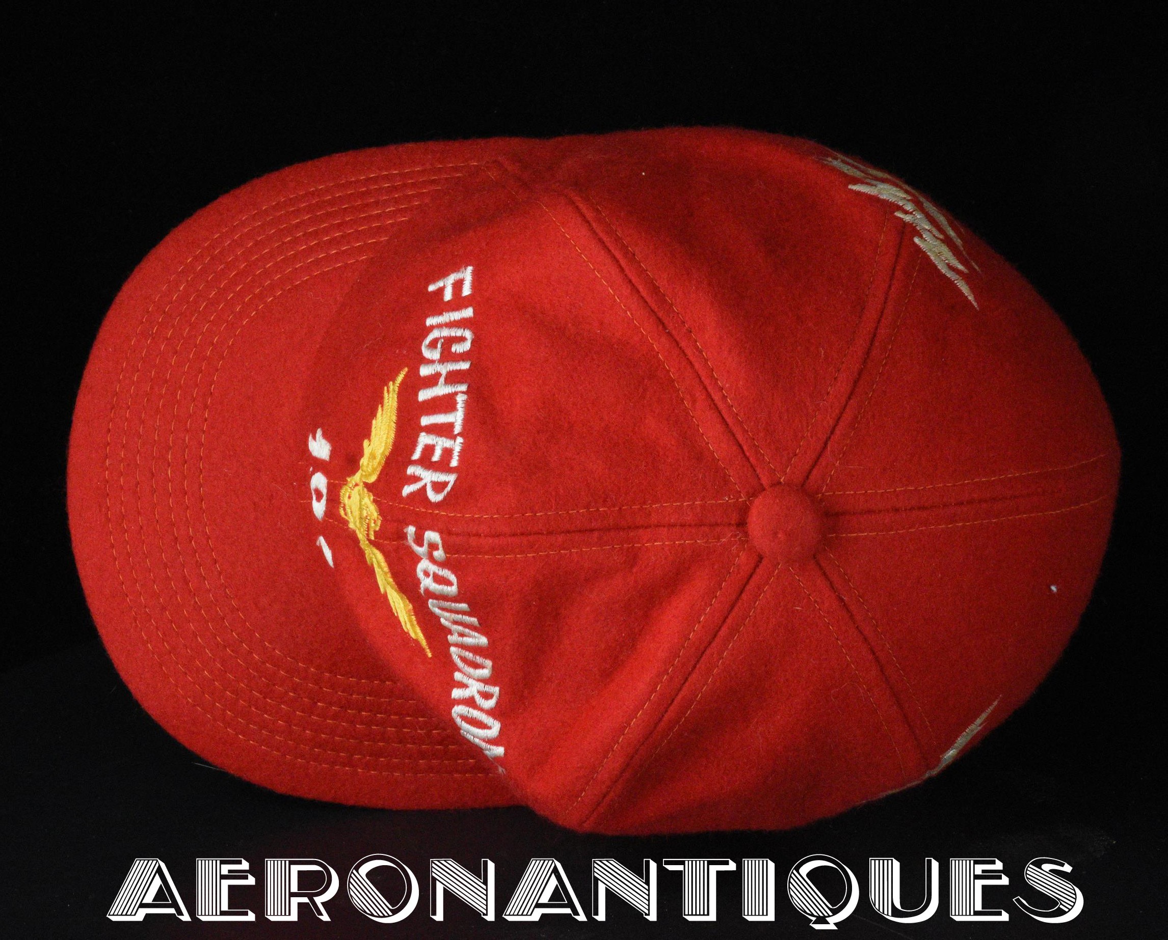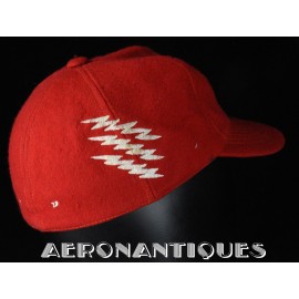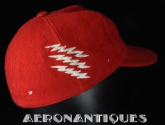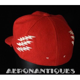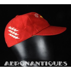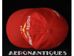 Très belle casquette type Base-Ball en laine rouge brodée d'un pilote de F-8 Crusader du VF-191 "SATAN'S KITTENS", circa 1960-70, certainement fabrication Japonaise. Très belle pièce peu courante en excellent état.