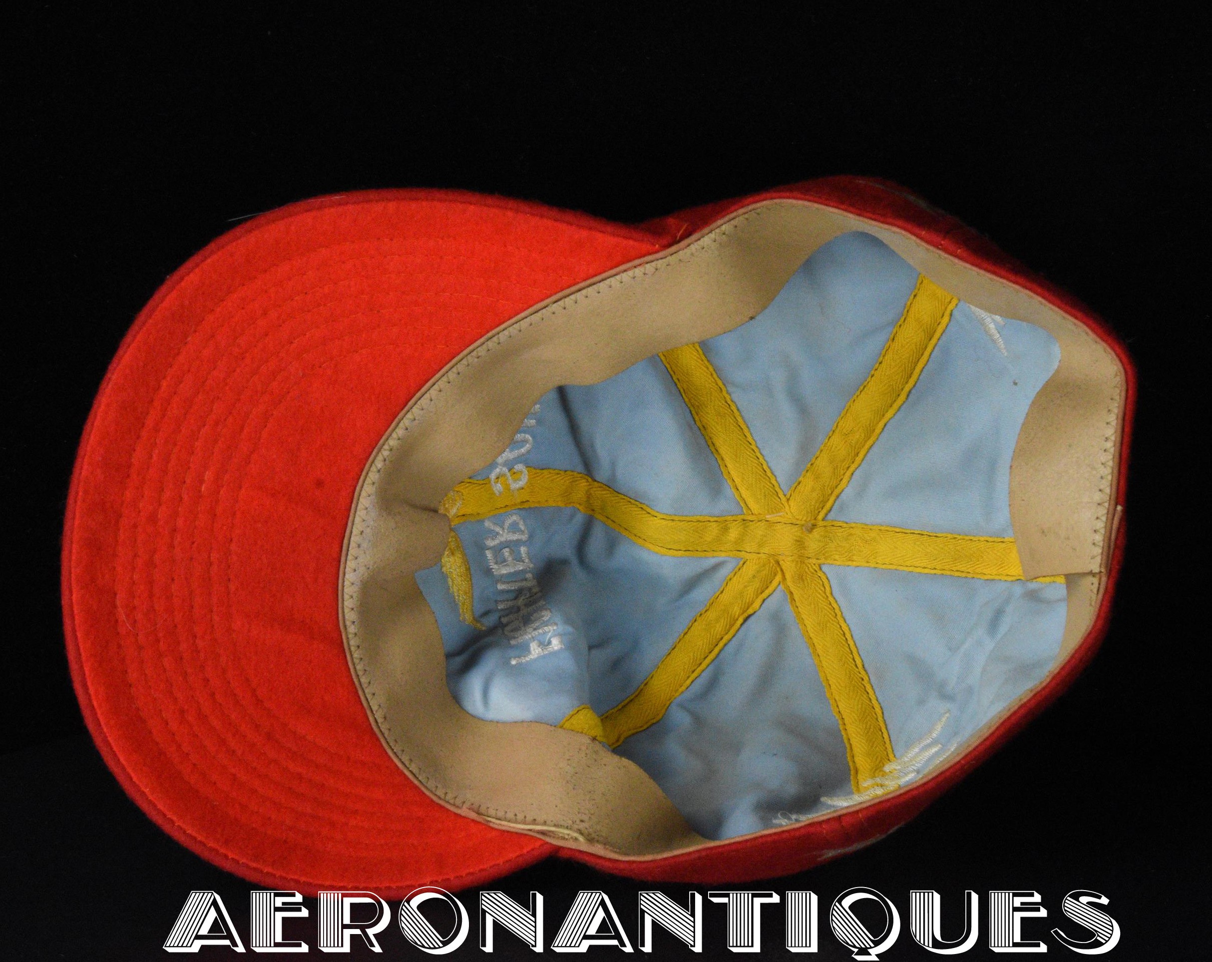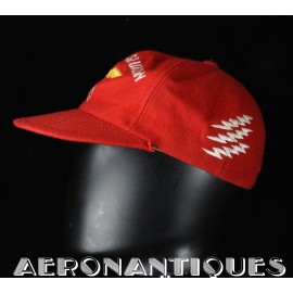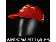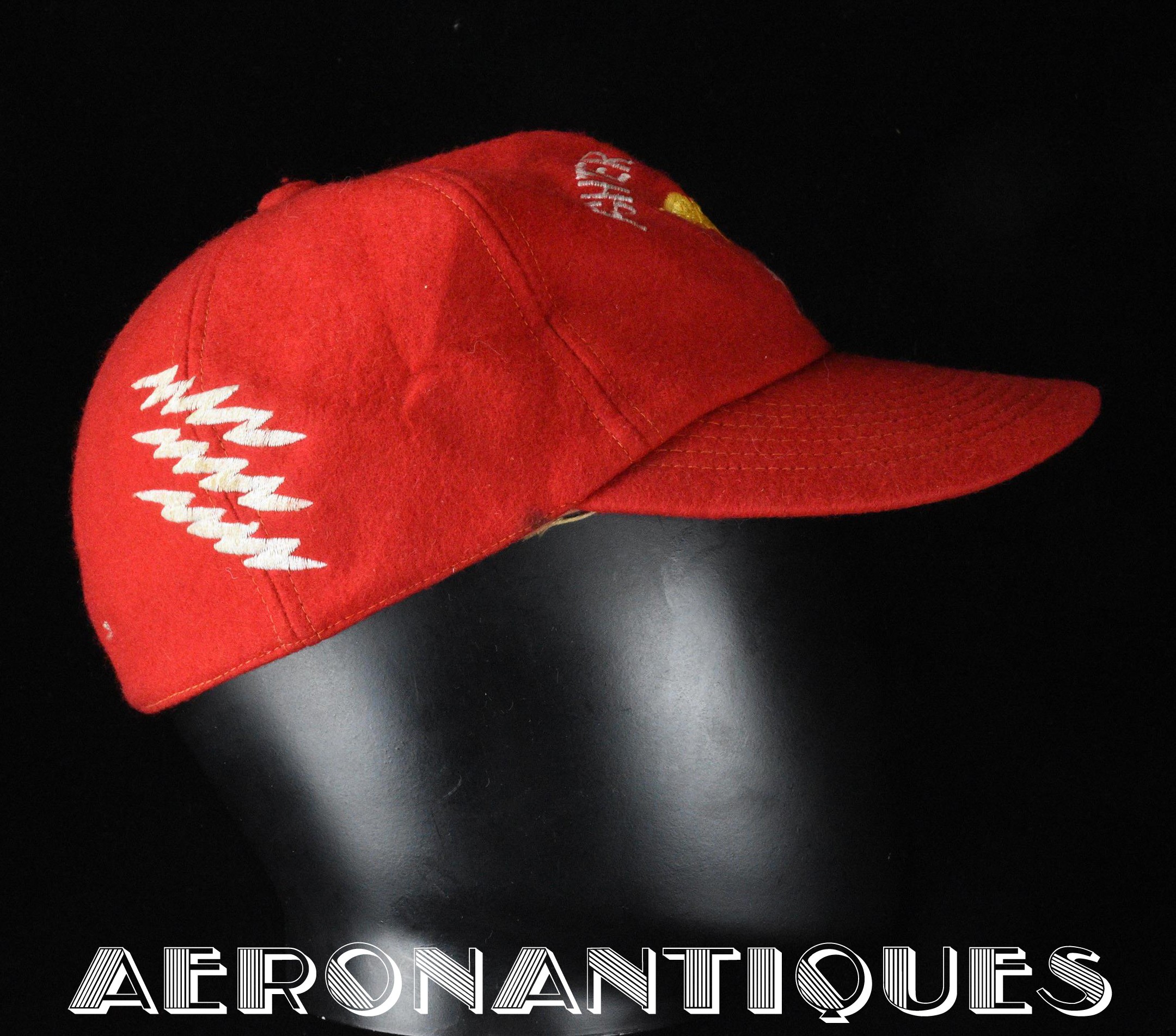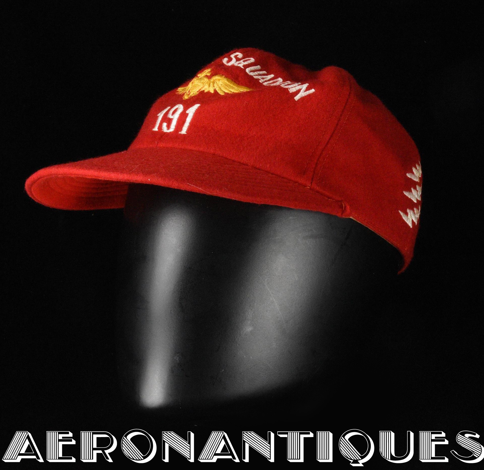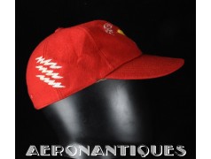 Très belle casquette type Base-Ball en laine rouge brodée d'un pilote de F-8 Crusader du VF-191 "SATAN'S KITTENS", circa 1960-70, certainement fabrication Japonaise. Très belle pièce peu courante en excellent état.