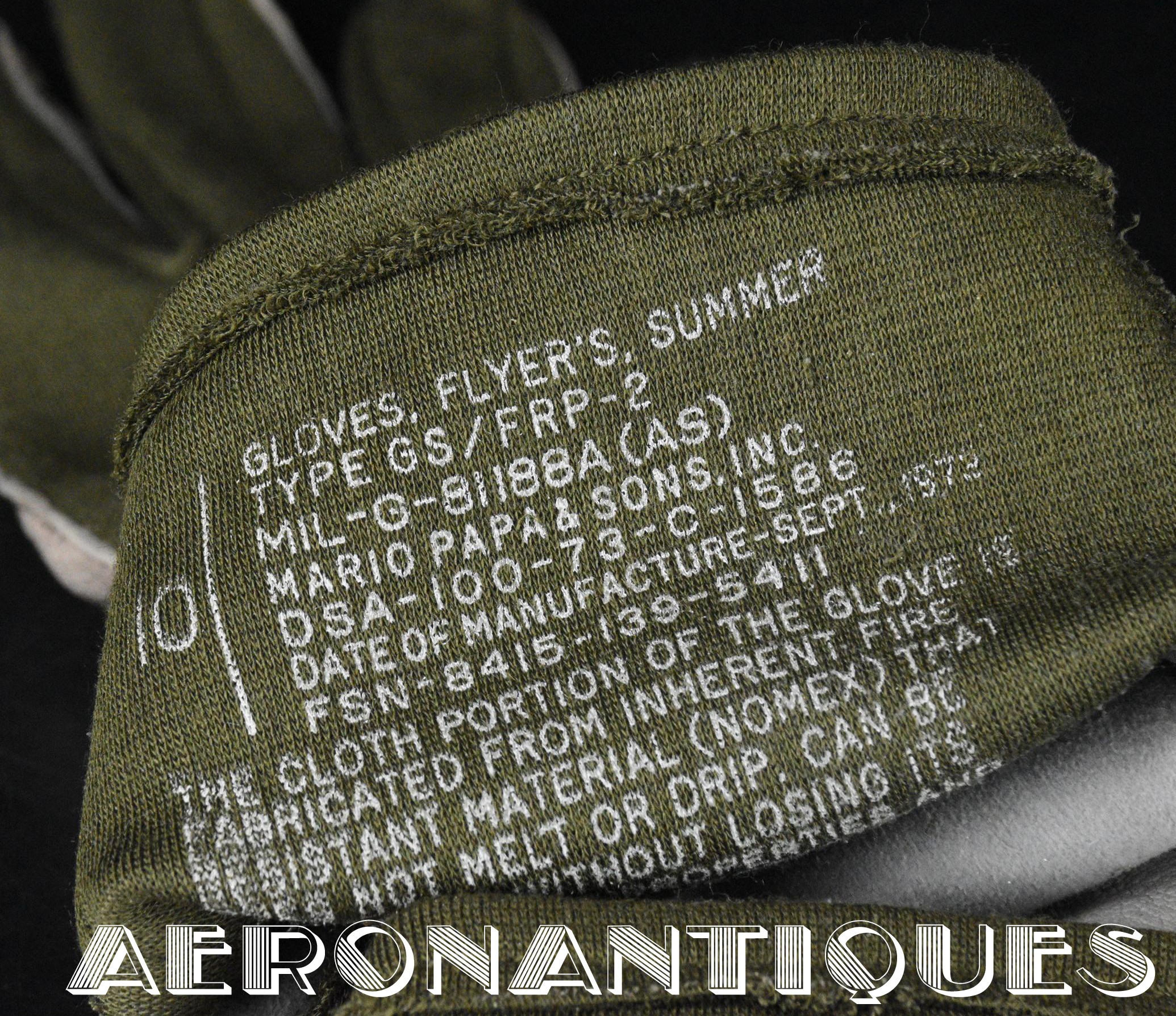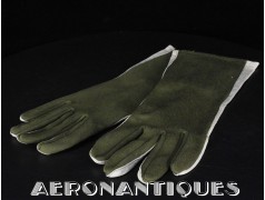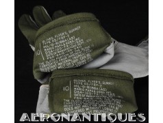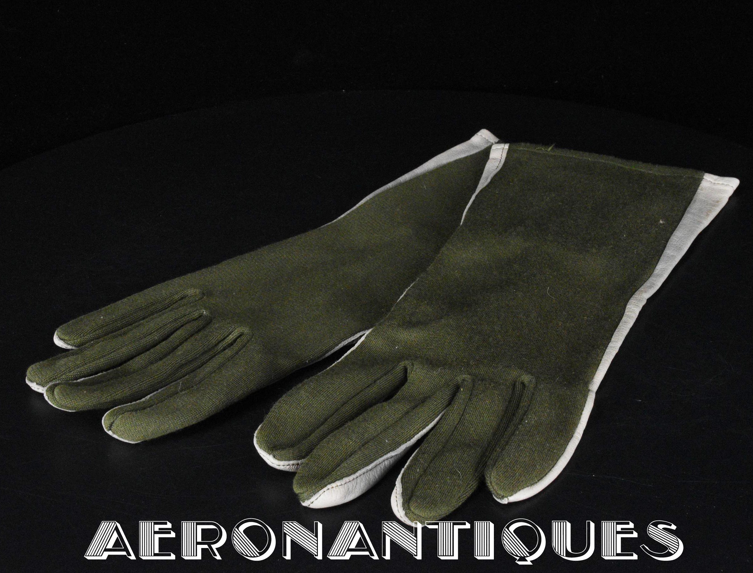 Paire de gants de pilote de l'US Navy ou de l'US Air Force modèle FRP-2 datés 1973, en cuir et matériau retardateur de feu type Nomex. Taille 10. Réglementaires et obligatoires à partir de la fin des années 60. Il remplaceront les modèles traditionnels en cuir type B3-A. Gants difficiles à trouver datés de cette période. Également utilisés par les pilotes d'hélicoptère de l'US Army.