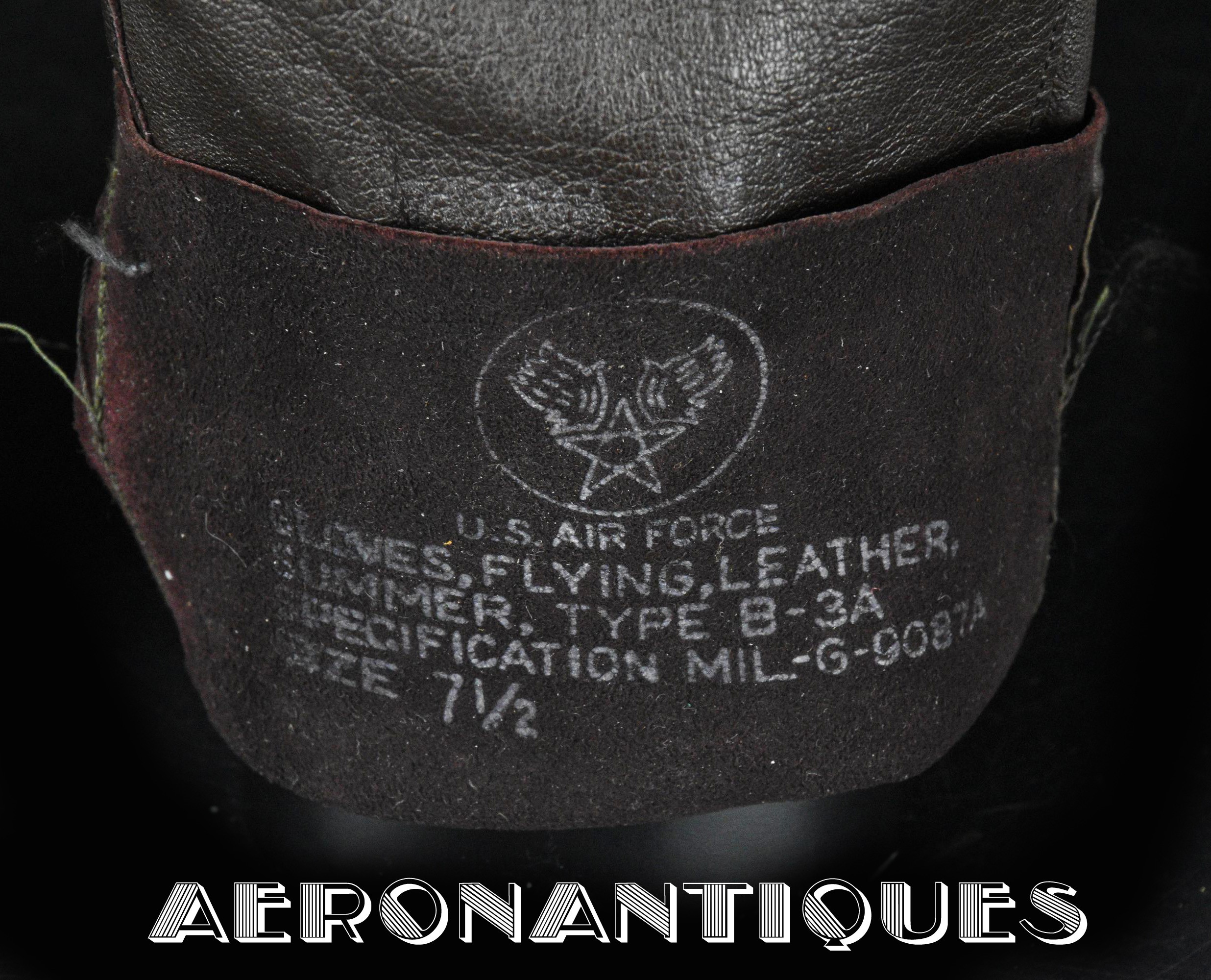Paire de gants de pilote de l'US Air Force B-3A en cuir de chèvre brun. Modèle été. Fabrication des années 50. Taille 7 1/2. Très bon état.